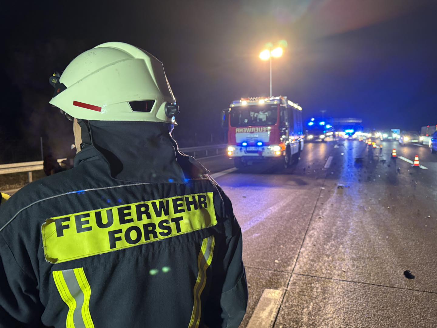 Die Fahrbahn wurde grob gereinigt, bevor ein Bergeunternehmen die verunfallten Fahrzeuge entfernte. Während der Einsatzmaßnahmen waren die beiden rechten Fahrspuren gesperrt. Die Feuerwehr Forst war mit einem Löschfahrzeug im Einsatz.