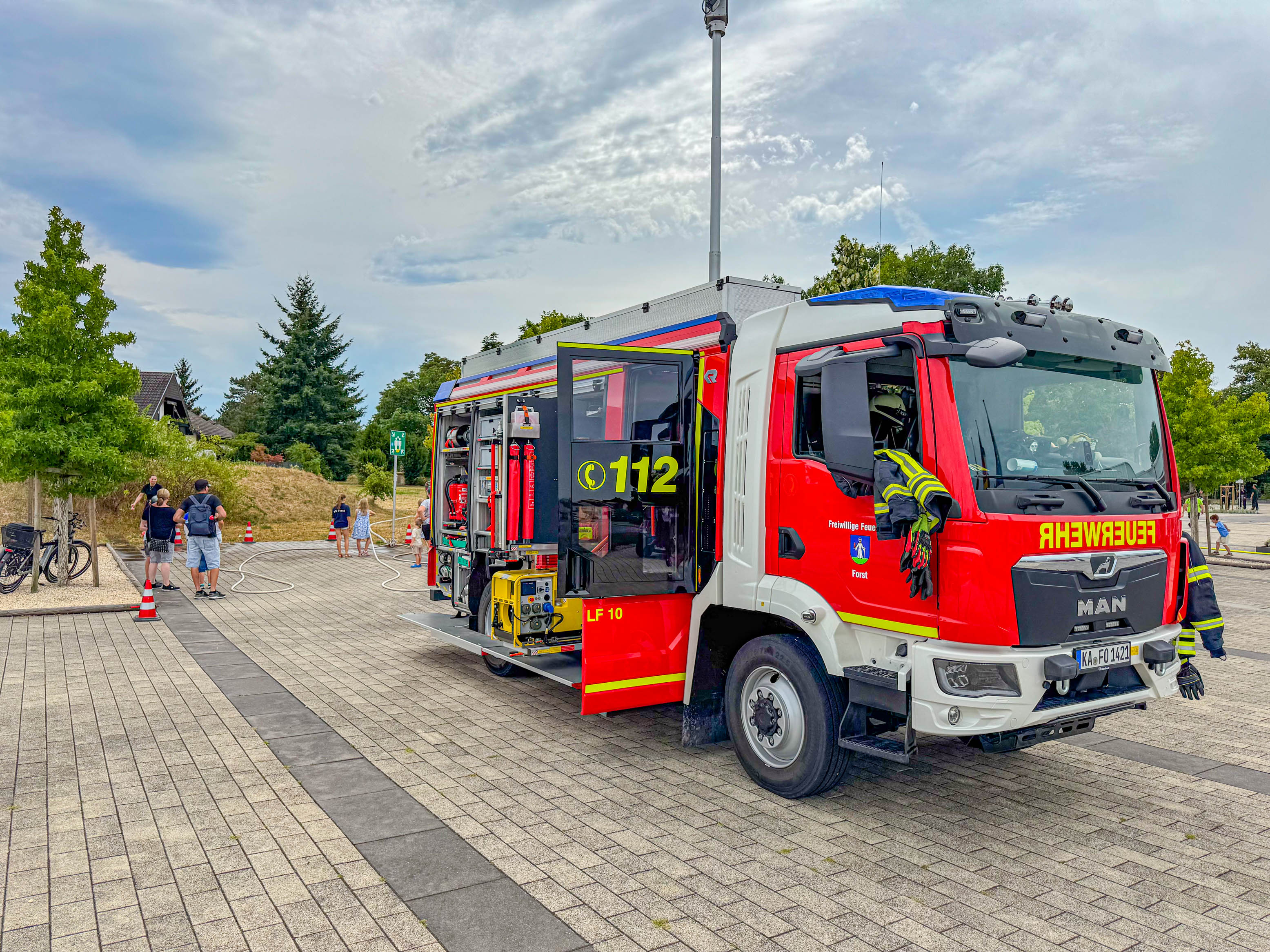 Auch die Freiwillige Feuerwehr Forst war an beiden Tagen mit vollem Einsatz dabei. Am Samstag betreuten wir den beliebten Bierwagen und sorgten damit nicht nur für Erfrischung, sondern auch für gute Stimmung bei den zahlreichen Besucherinnen und Besuchern. Der Sonntag stand ganz im Zeichen der Aktionsmeile vor der Waldseehalle, bei der sich die Rettungsorganisationen präsentierten.