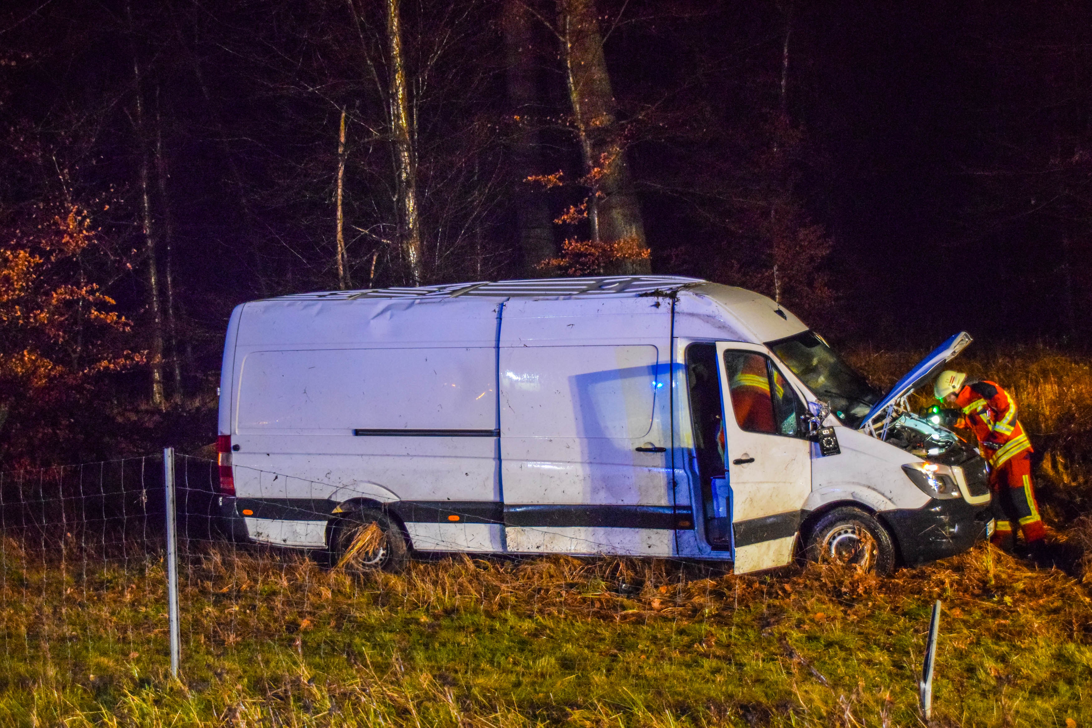 Der 38-Jährige Fahrer eines weißen Sprinters befuhr die Autobahn BAB5 in nördlicher Fahrtrichtung. Zwischen dem Rasthof Bruchsal und der Anschlussstelle Kronau kam er dann aus bislang ungeklärter Ursache alleinbeteiligt nach rechts von der Fahrbahn ab. In der Folge durchbrach der Sprinter den dortigen Zaun, überschlug sich und kam im angrenzenden Wald zum Stehen.