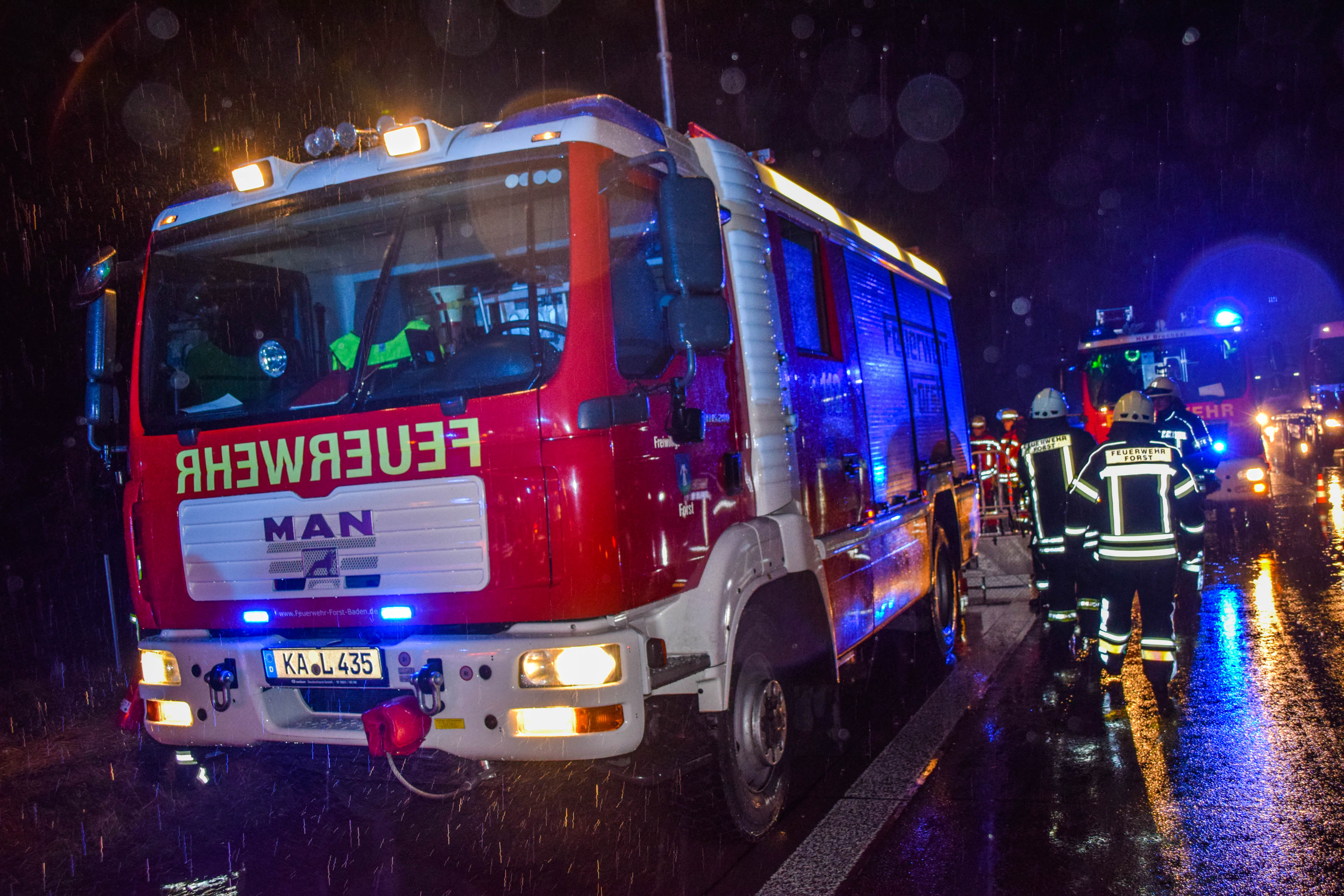 Mit dem Einsatzstichwort TH-VU eingeklemmte Person, wurden die Freiwilligen Feuerwehren aus Bruchsal und Forst am frühen Dienstagmorgen, den 16.01.2018 gegen 06:25 Uhr auf die BAB5 in Fahrtrichtung Frankfurt alarmiert.