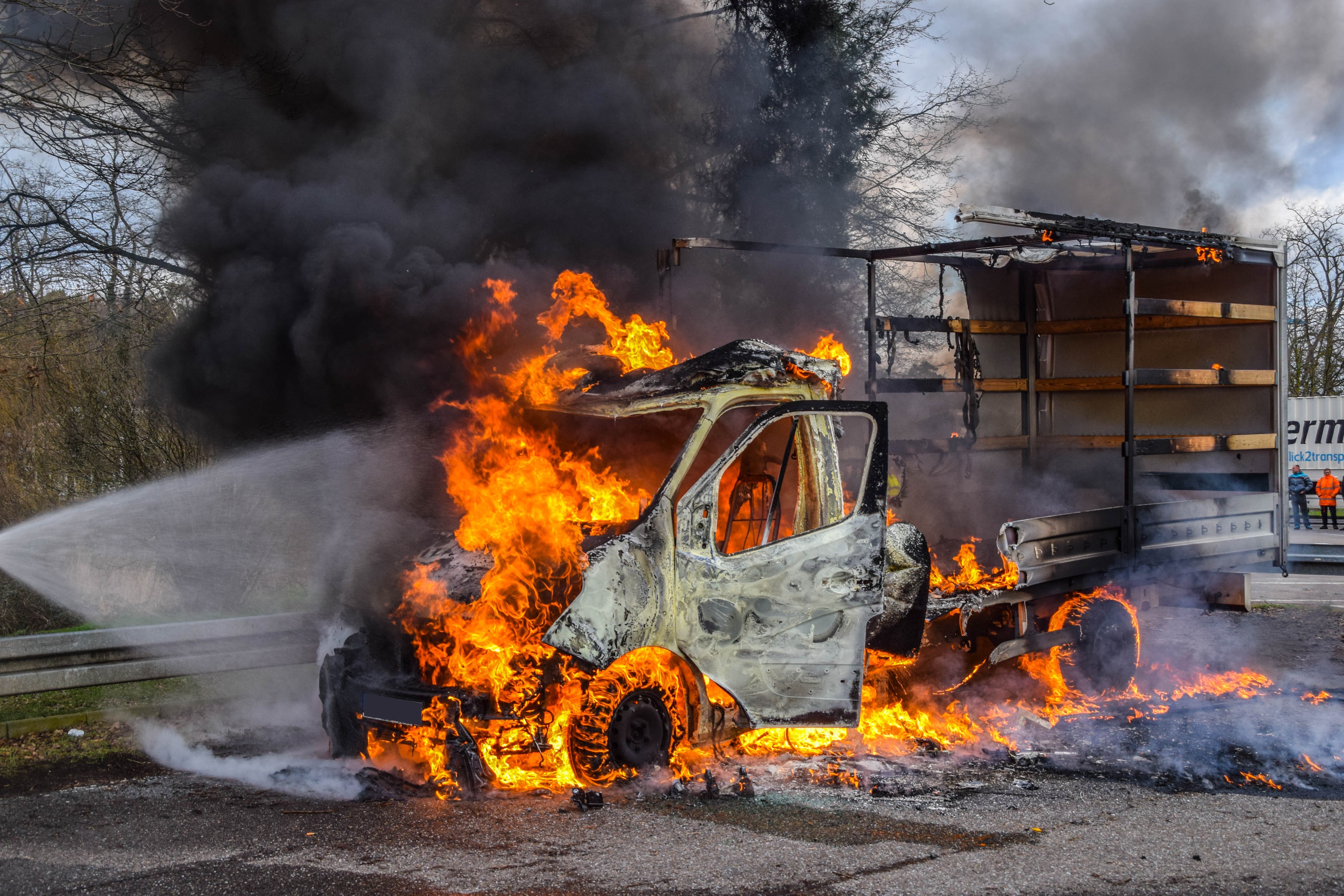 Der Fahrer eines Kleinlaster bemerkte während der Fahrt auf dem Rasthof eine Rauchentwicklung und Brandgeruch an seinem Fahrzeug. Nachdem er den Parkplatz ansteuerte, schlugen bereits kurze Zeit später Flammen aus dem vorderen Bereich der Ladefläche. Mehrere Notrufe gingen daraufhin bei der Integrierten Leitstelle Karlsruhe ein.