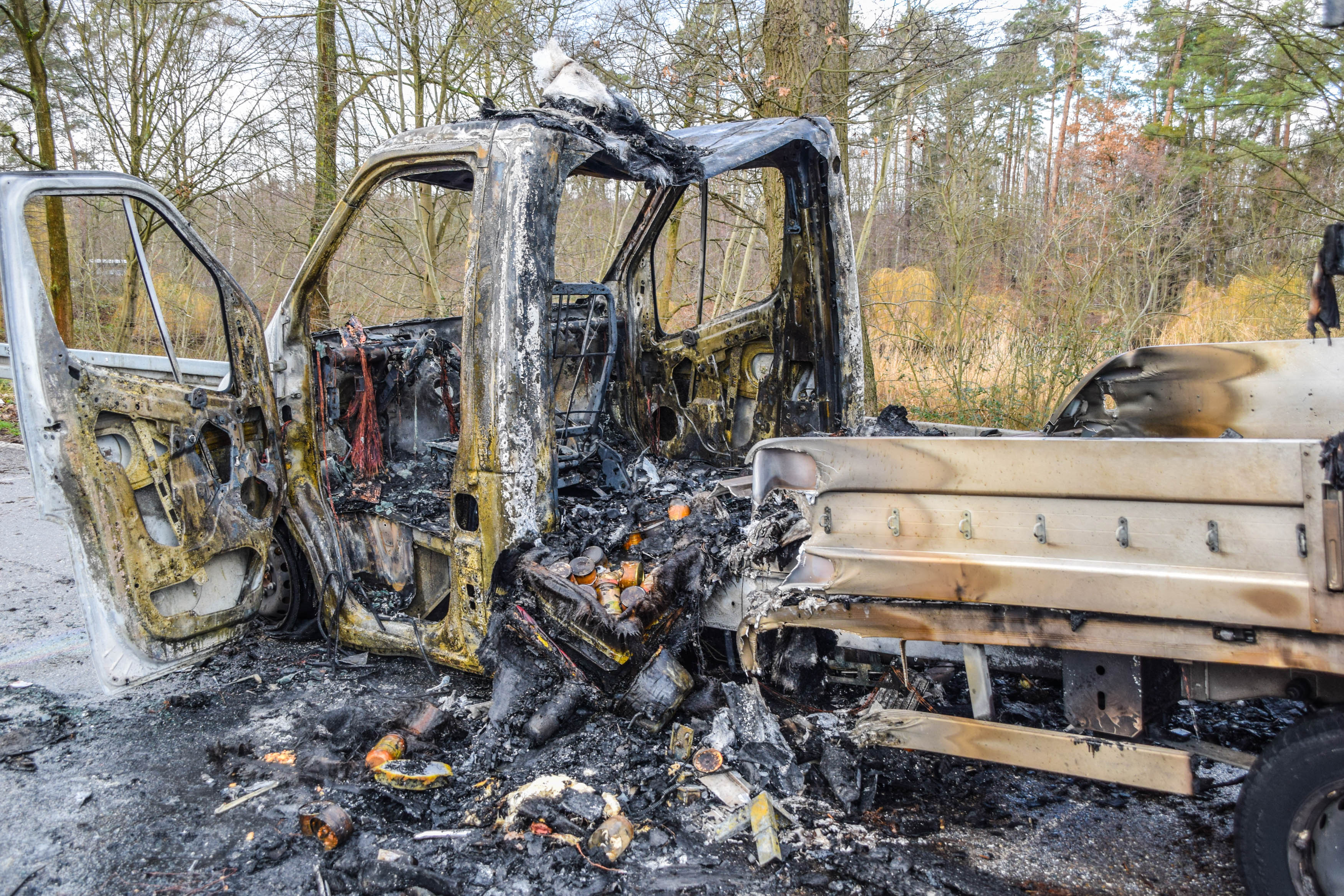 Beim Eintreffen der ersten Einsatzkräfte der Forster Feuerwehr stand der Kleinlaster bereits in Vollbrand. Mit einem Trupp unter Atemschutz wurde die Brandbekämpfung vorgenommen. Ein weiterer Trupp verhinderte durch eine Riegelstellung zum angrenzenden Waldstück und Grünstreifen ein Übergreifen der Flammen. Das Feuer konnte dadurch schnell unter Kontrolle gebracht werden. Betriebsstoffe welche aus dem Kleinlaster austraten, mussten ebenfalls abgestreut werden.