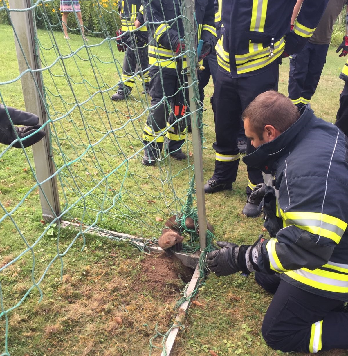 Im Garten eines dortigen Anwesens hatte sich ein Marder im Netz eines Fußballtores verfangen und konnte sich nicht mehr selbstständig befreien. Die Forster Feuerwehr rückte daraufhin an und konnte den doch recht aggressiven Marder aus seiner misslichen Lage befreien. Kaum war er frei, rannte er auch schon davon.