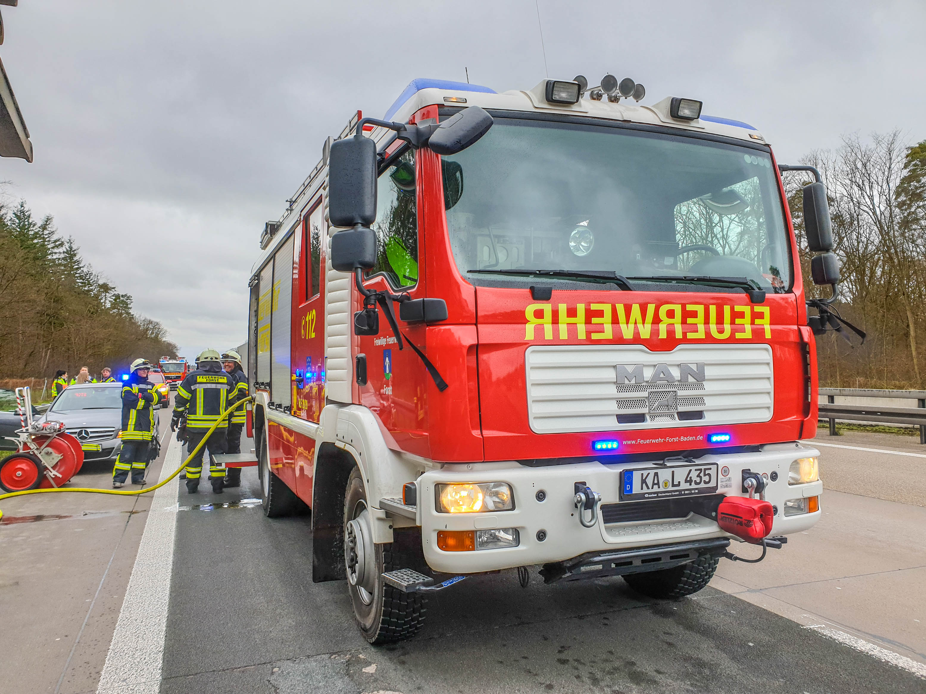 Im Anschluss konnte die Einsatzstelle an die Polizei übergeben werden. Während der Löscharbeiten war der rechte Fahrstreifen gesperrt. Die Freiwillige Feuerwehr Forst war mit einem Löschfahrzeug unter der Leitung des Kommandanten Mario Heinzmann im Einsatz.