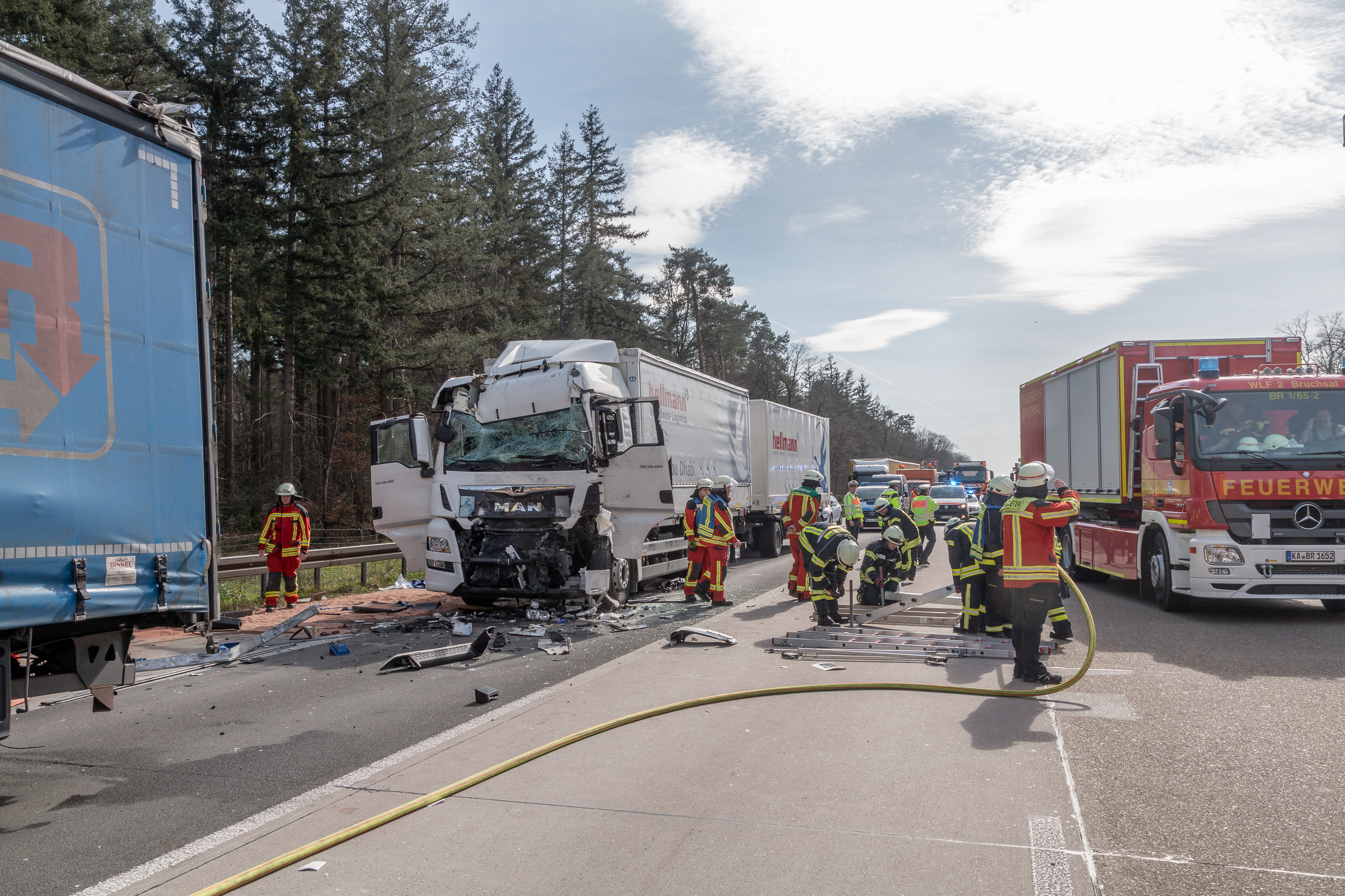 Zu einem LKW-Unfall wurde die Freiwillige Feuerwehr Forst am Montagmittag gegen 12:52 Uhr auf die Autobahn A5 in Fahrtrichtung Frankfurt alarmiert.