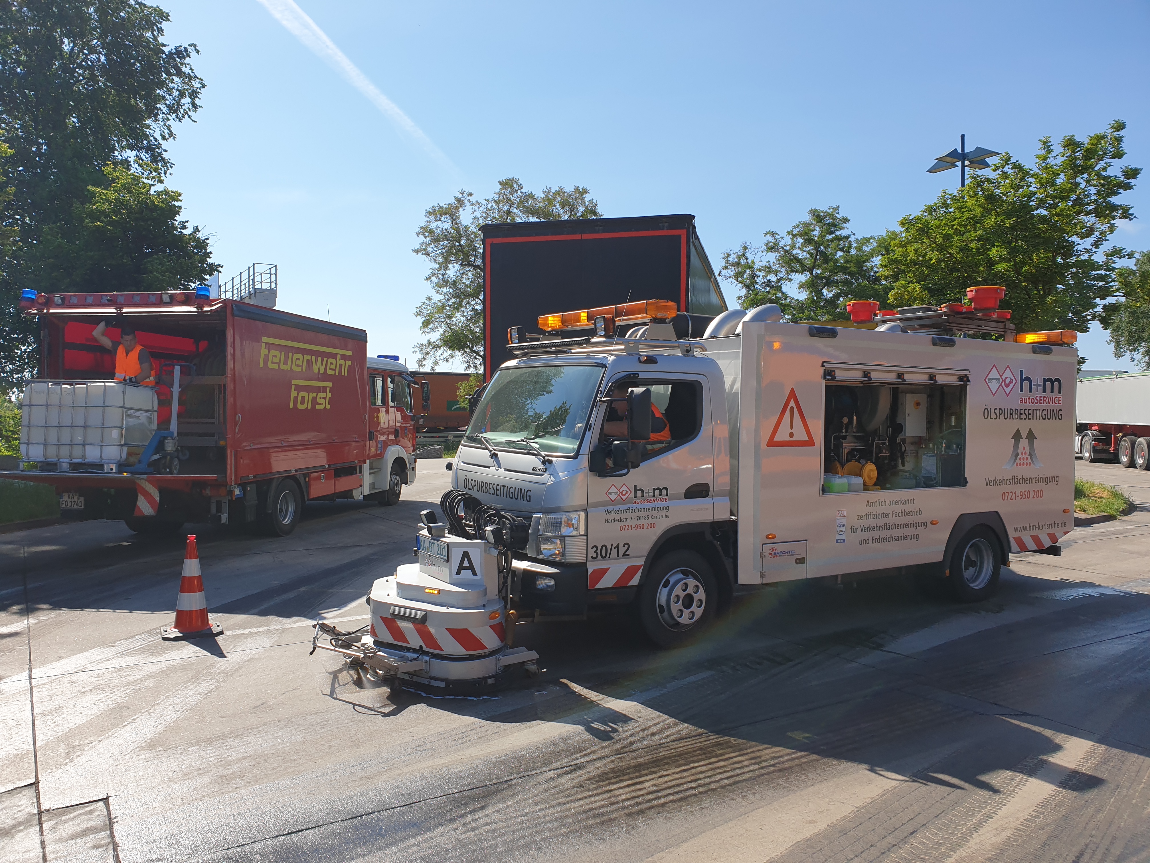 Zudem rückte eine Fachfirma an und reinigte die verschmutzte Fahrbahn. Die Freiwillige Feuerwehr Forst war mit zwei Einsatzfahrzeugen unter der Leitung des Forster Kommandanten Mario Heinzmann rund 2 Stunden im Einsatz.