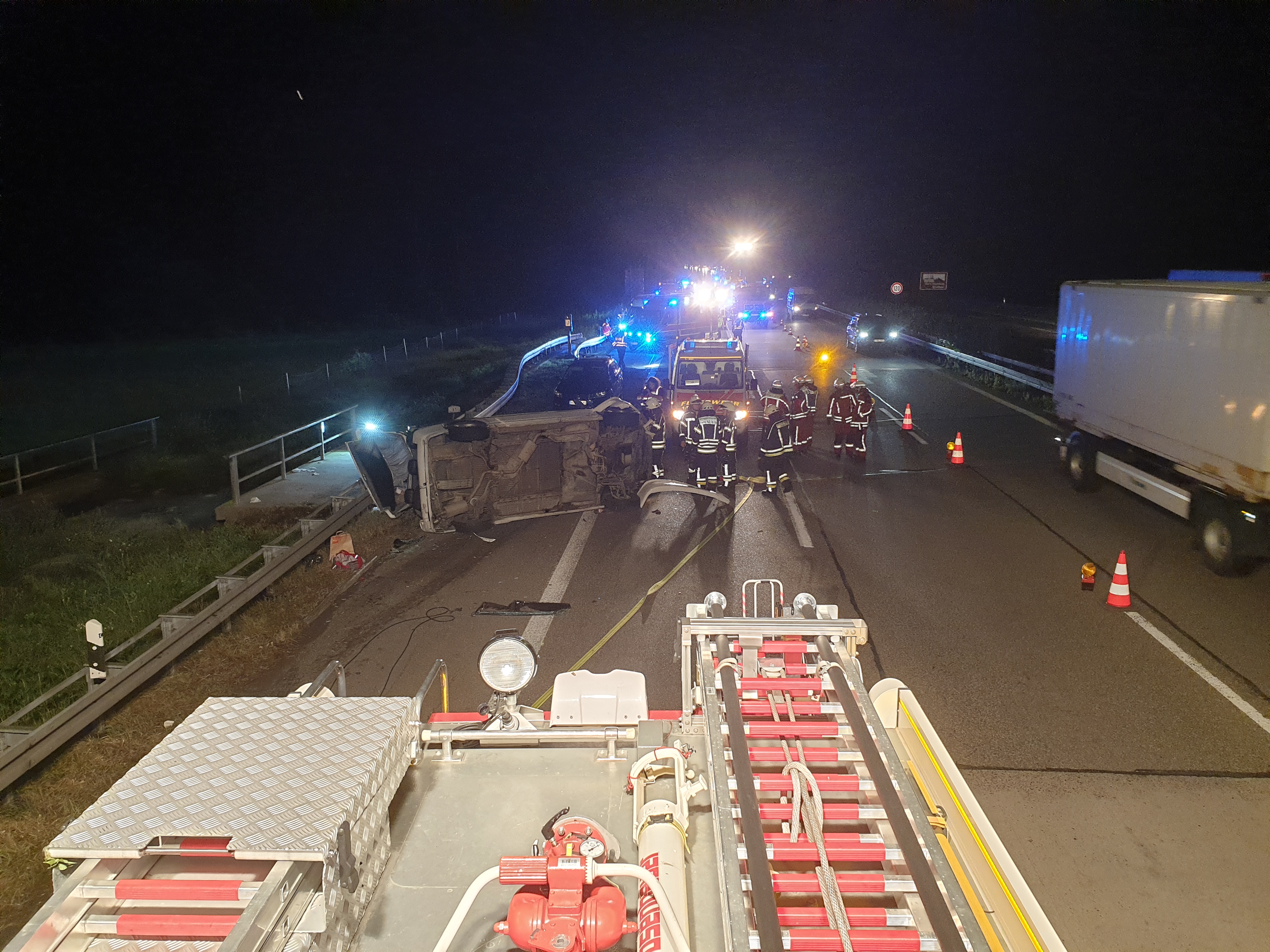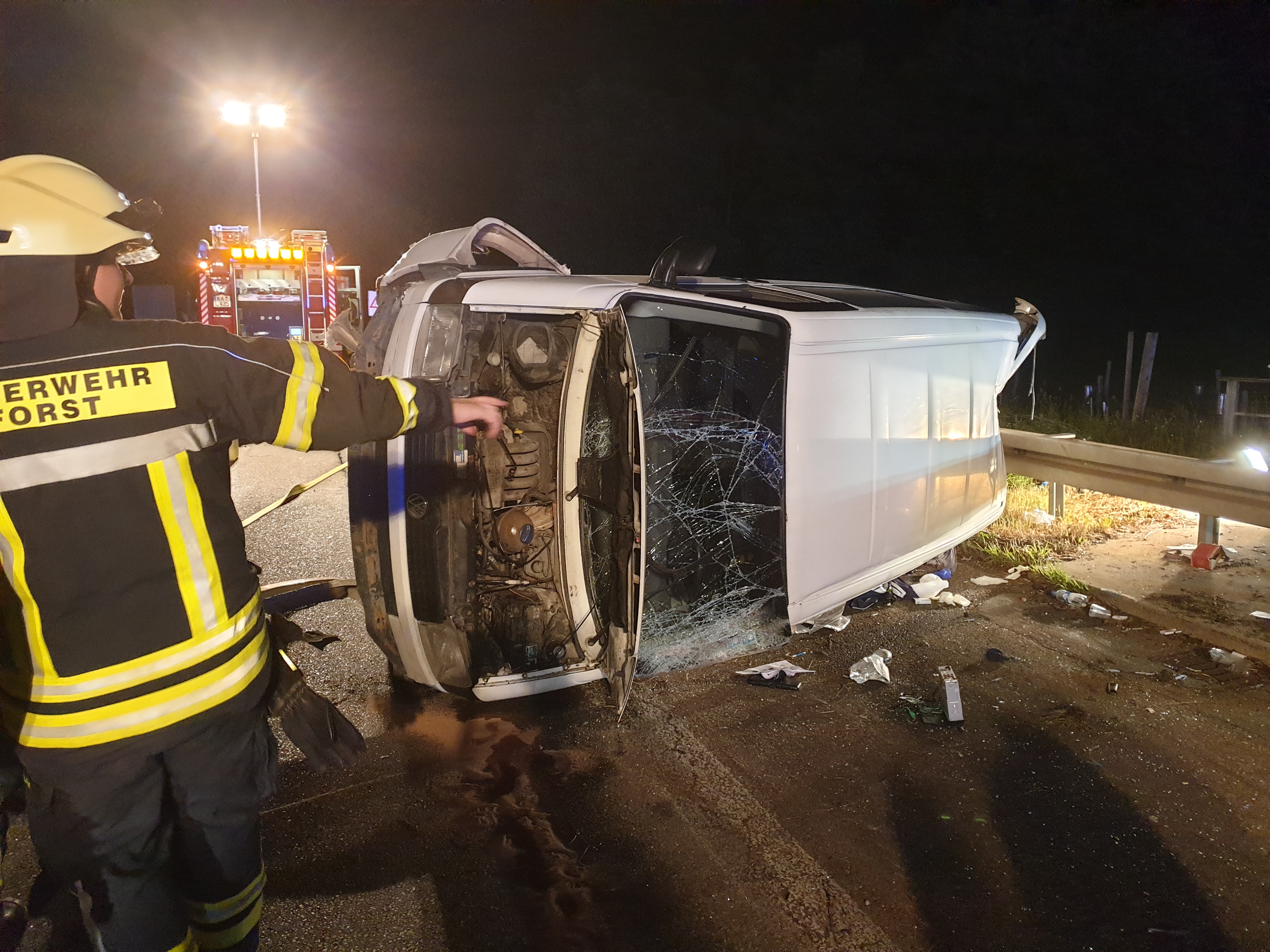 Zu einem Verkehrsunfall mit eingeklemmter Person wurden die Feuerwehren aus Forst und Bruchsal am späten Montagabend gegen 23 Uhr auf die A5 zwischen Forst und Kronau alarmiert.