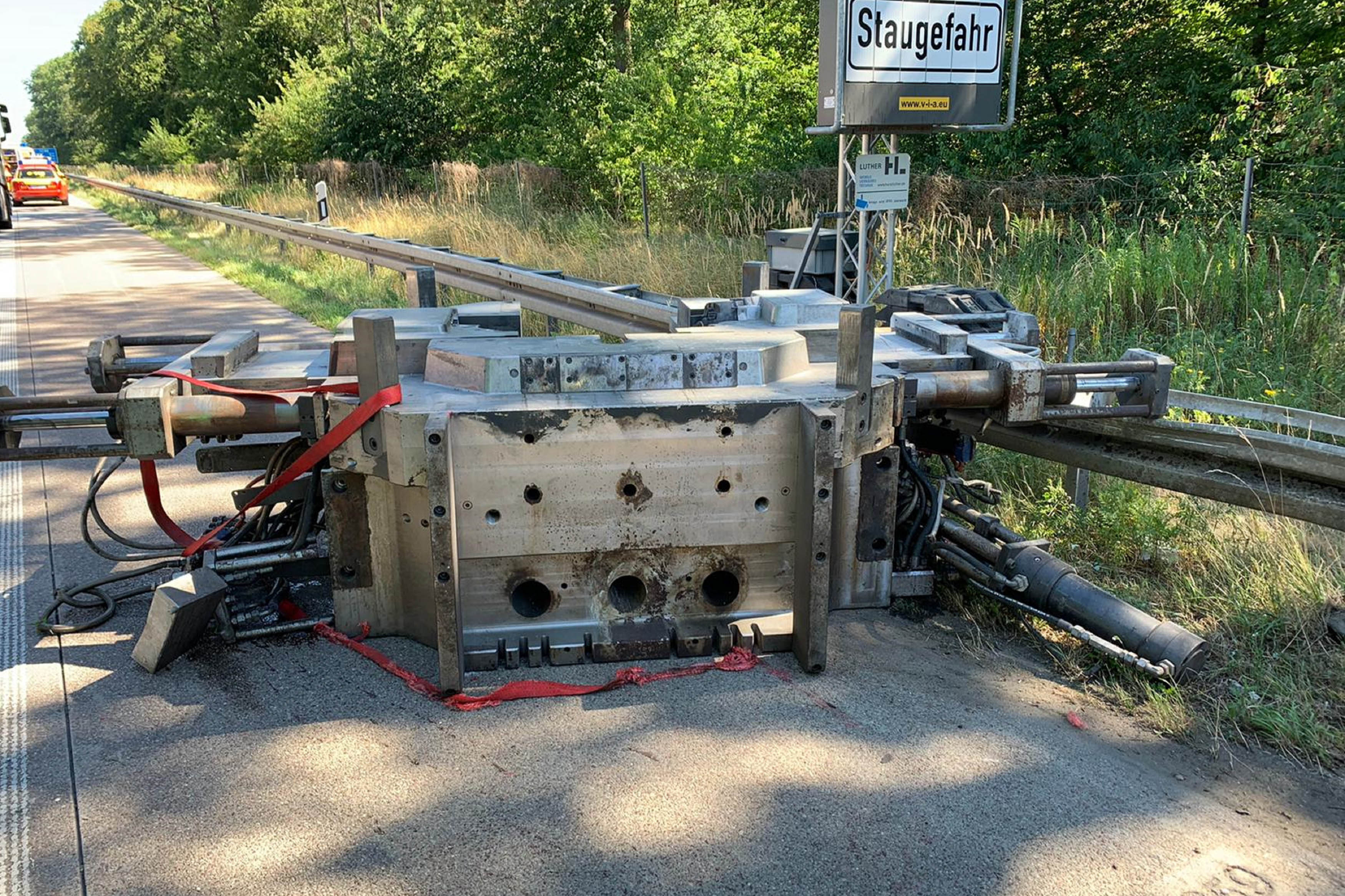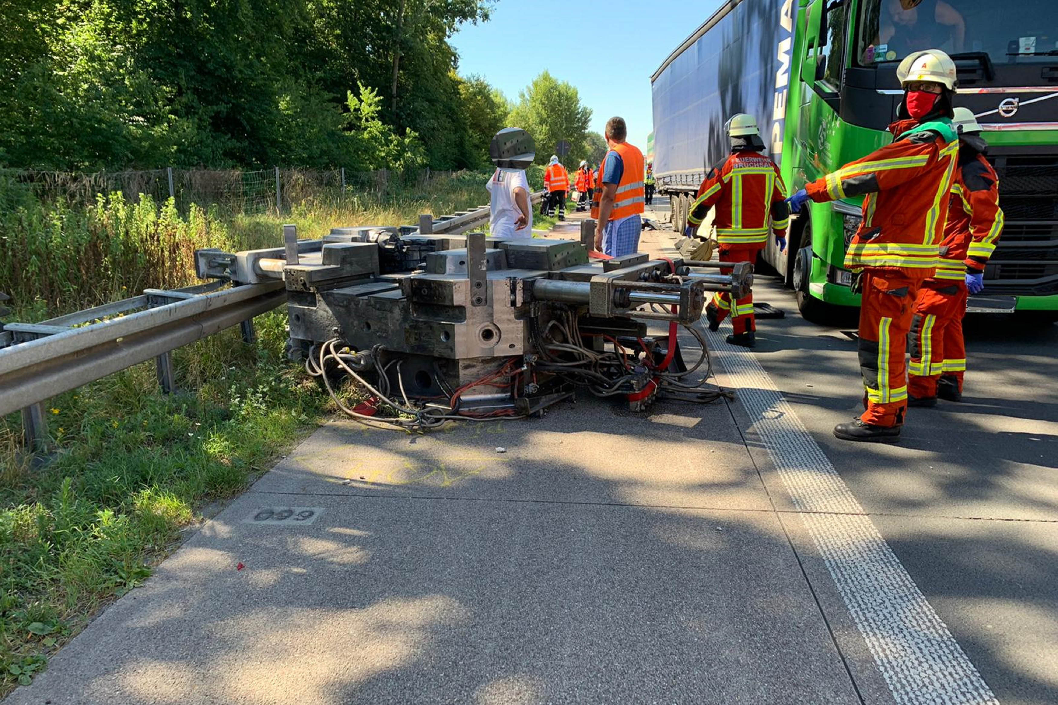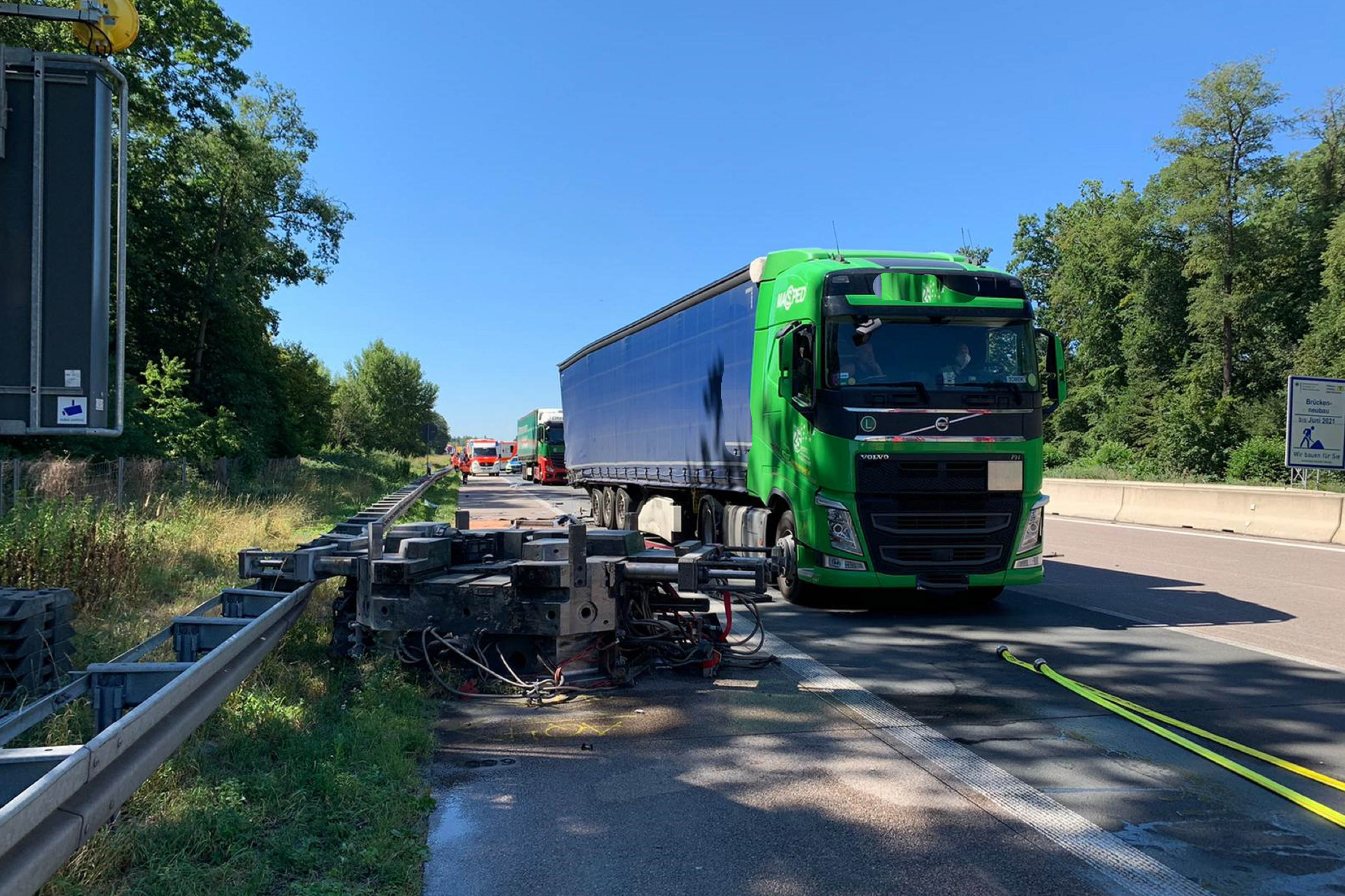 Nach den Feststellungen der Autobahnpolizei Karlsruhe, fuhren am Stauende mehrere Lastwagen aufeinander auf. Durch die Wucht des Aufpralls wurden zwei Lastwagen hierbei ineinander verkeilt. Eine hydraulische Presse, welche ein Lastwagen geladen hatte, flog auf die Fahrbahn der Autobahn. Mehrere Personen wurden verletzt und vom Rettungsdienst versorgt. Glücklicherweise wurde aber keine Person eingeklemmt.