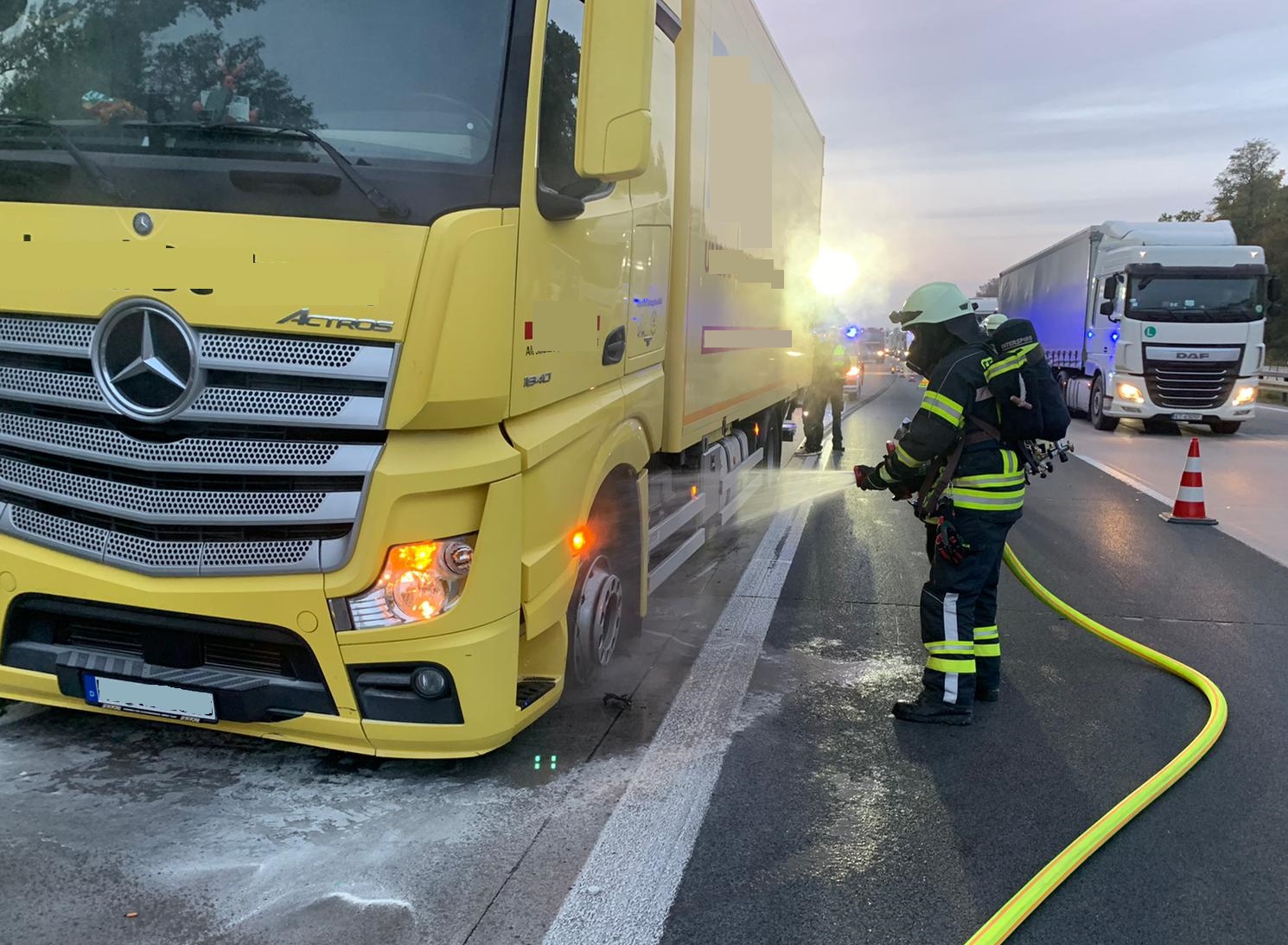 Die Freiwillige Feuerwehr Forst wurde am Mittwochmorgen gegen 07.27 Uhr zu einem Lkw-Brand auf die Bundesautobahn A5 in Fahrtrichtung Frankfurt alarmiert.