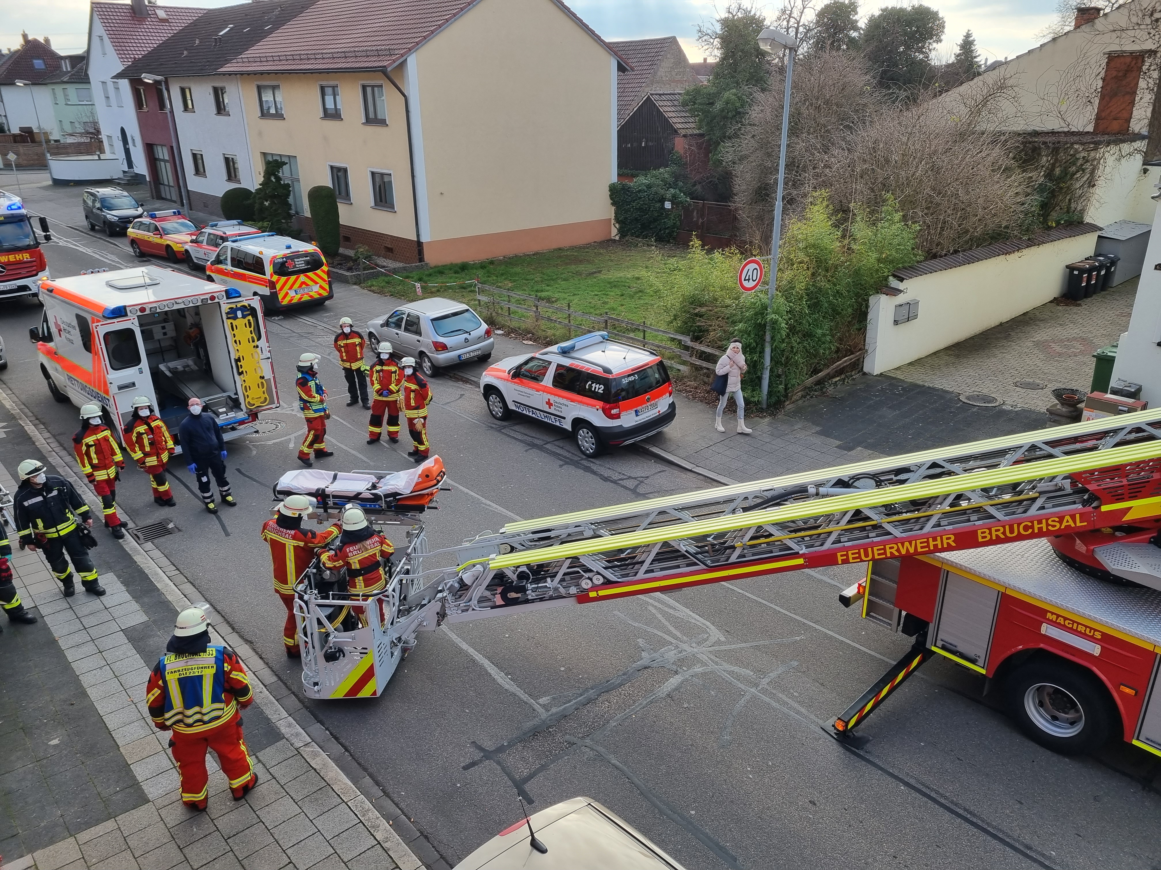 Gegen 13:36 Uhr wurde die Feuerwehr Forst und die Drehleiter der Feuerwehr Bruchsal auf Anforderung des Rettungsdienstes in ein Wohnhaus in die Bruchsaler Straße alarmiert. Dort musste eine Person aufgrund eines Hausunfalls schonend mittels der Drehleiter gerettet werden.