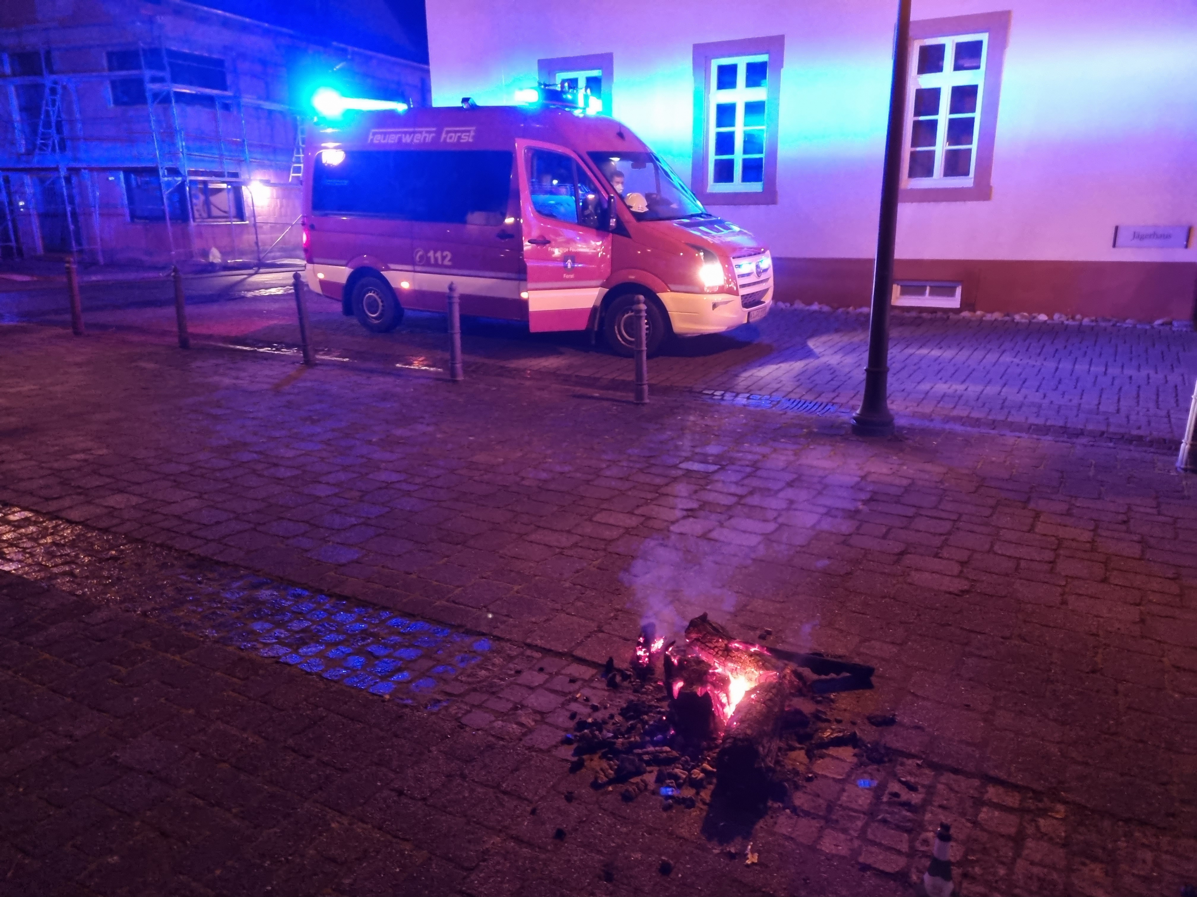 Dort glimmte ein im Freien aufgestellter Holzscheit nach einer Veranstaltung am Abend. Beim Eintreffen der Feuerwehr wurden auch die sich noch an der Örtlichkeit aufhaltenden Verantwortlichen der Veranstaltung aufmerksam. Die Feuerwehr löschte zur Sicherheit den Holzscheit mit Kleinlöschgerät ab. Nach wenigen Augenblicken konnte der Einsatz beendet werden.