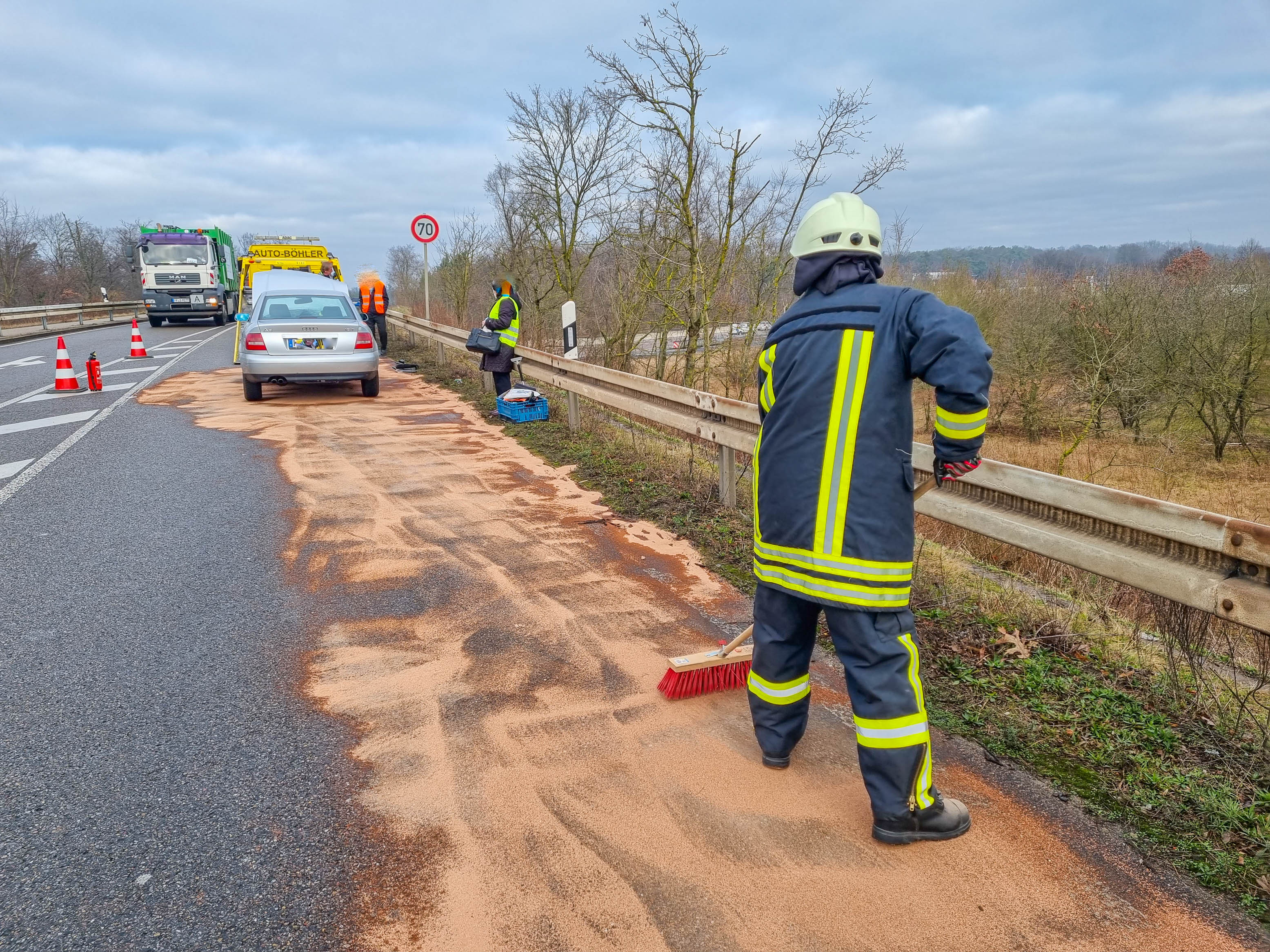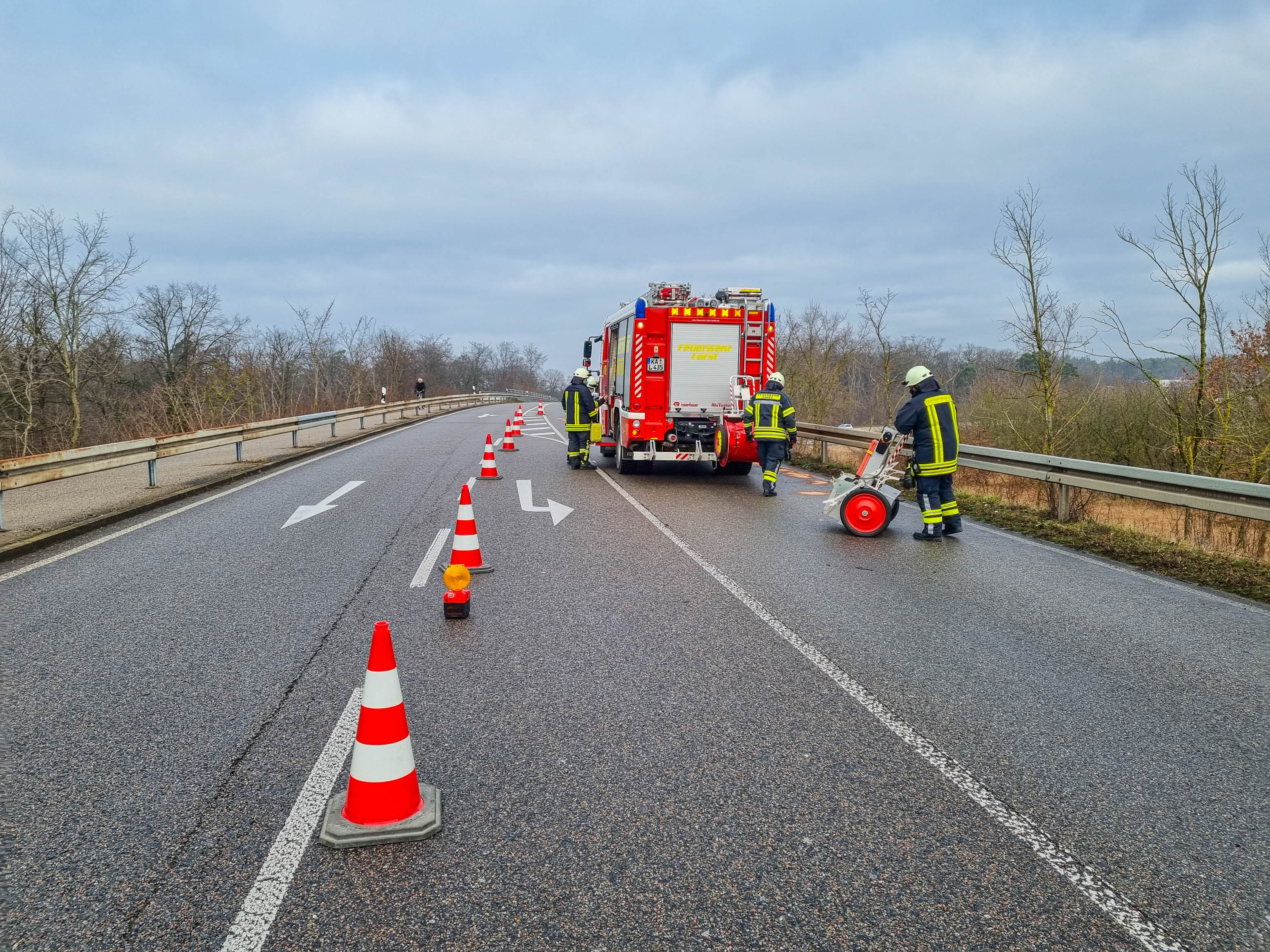 Die Freiwillige Feuerwehr Forst war mit zwei Einsatzfahrzeugen und 10 Kräften rund 2 Stunden im Einsatz. Der Rettungsdienst und die Polizei waren ebenfalls vor Ort. Während der gesamten Einsatzmaßnahmen wurde der Verkehr einspurig an der Unfallstelle vorbeigeleitet.