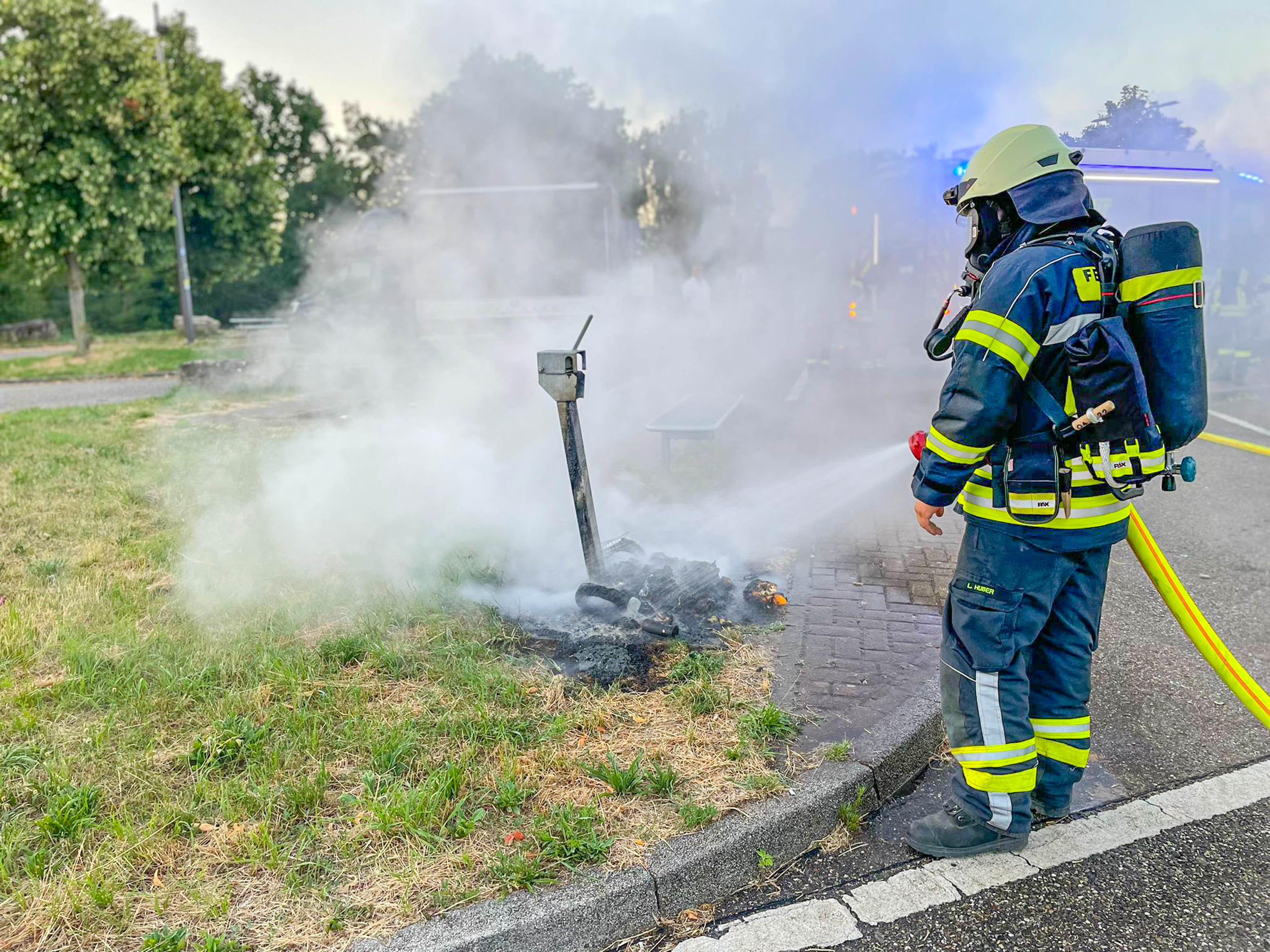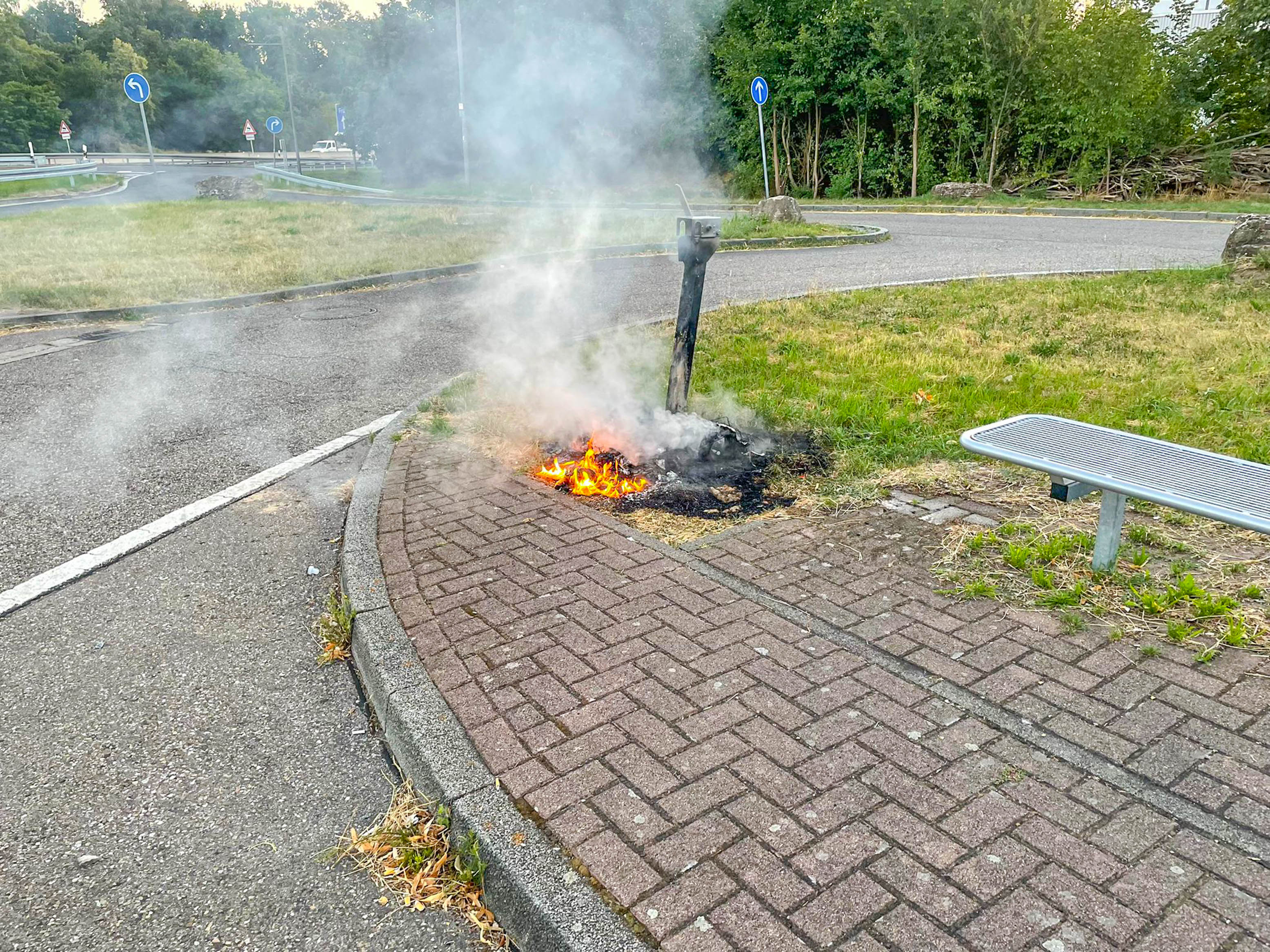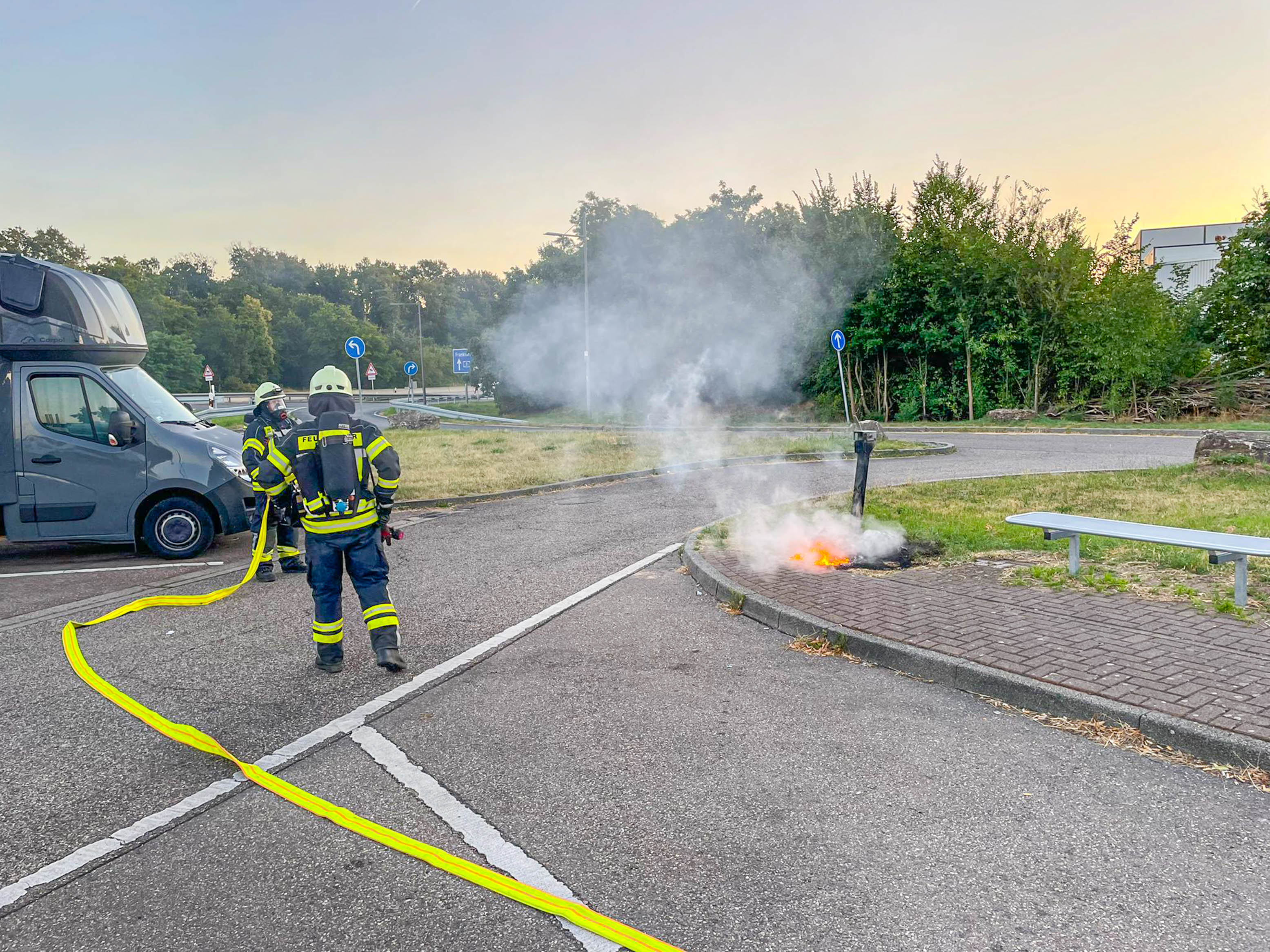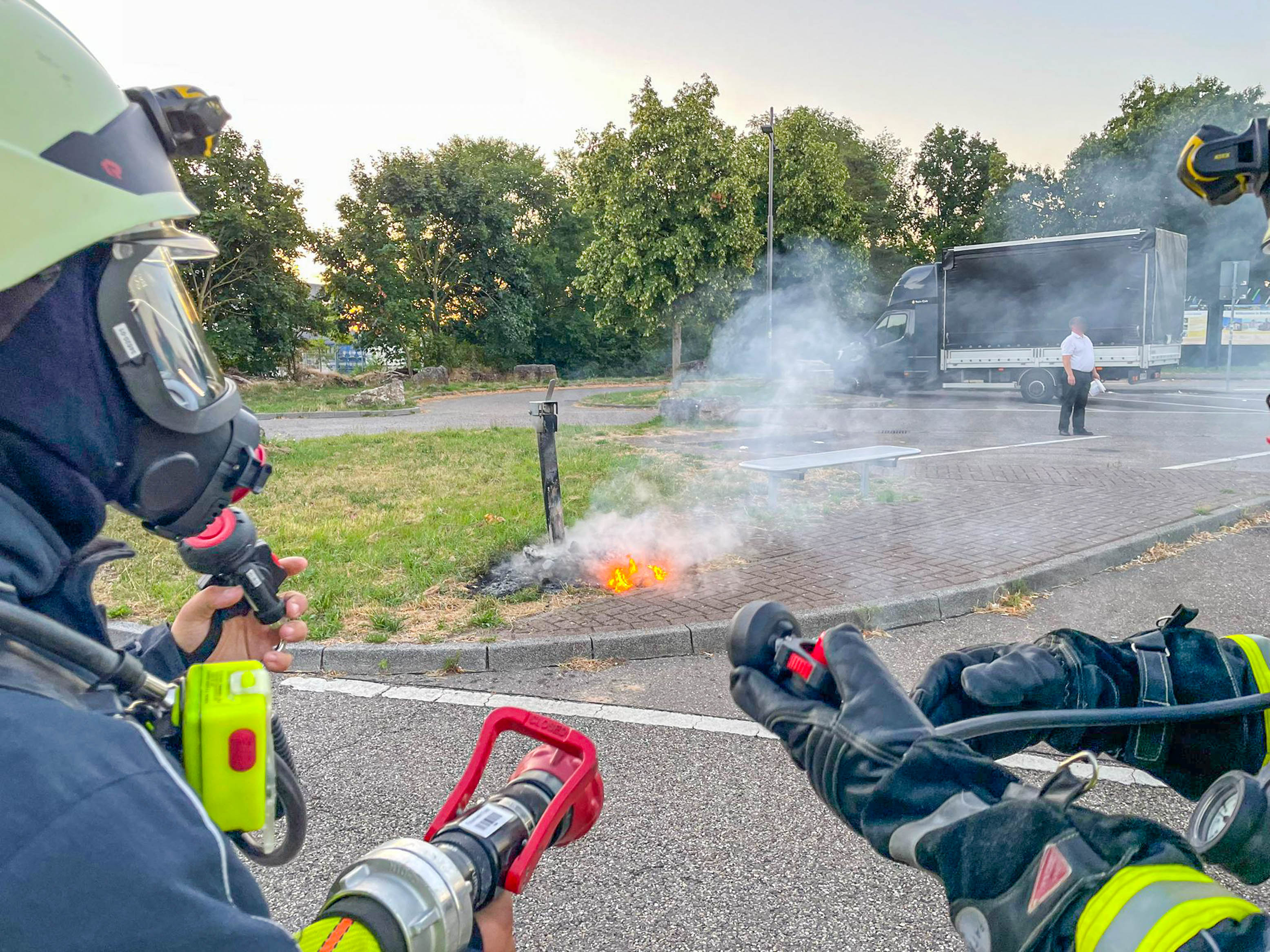 Vor Ort stand ein Müllbehälter auf dem dortigen Parkplatz des Rasthofes in Flammen. Die Feuerwehr konnte den Brand mit einem Trupp unter Atemschutz rasch bekämpfen und die Brandörtlichkeit im Anschluss mit ausreichend Wasser benetzen.