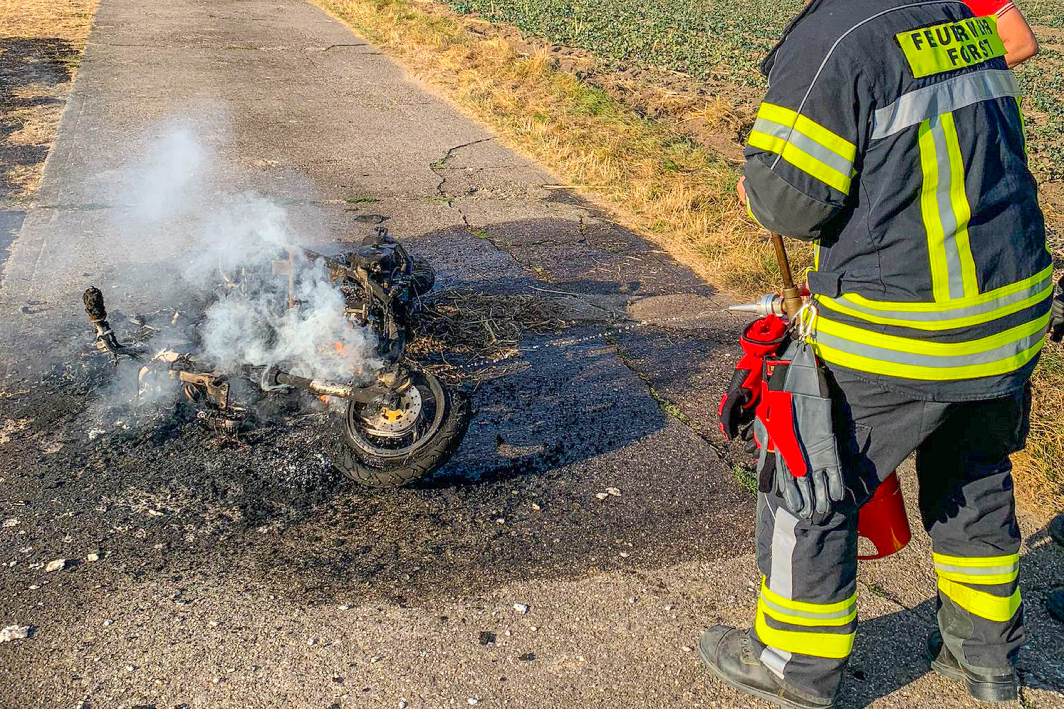 Zu einem Brand eines Mofarollers wurde die Feuerwehr Forst am Montagabend gegen 18.10 Uhr auf das Feld neben der Kreisstraße zwischen Forst und Weiher alarmiert.