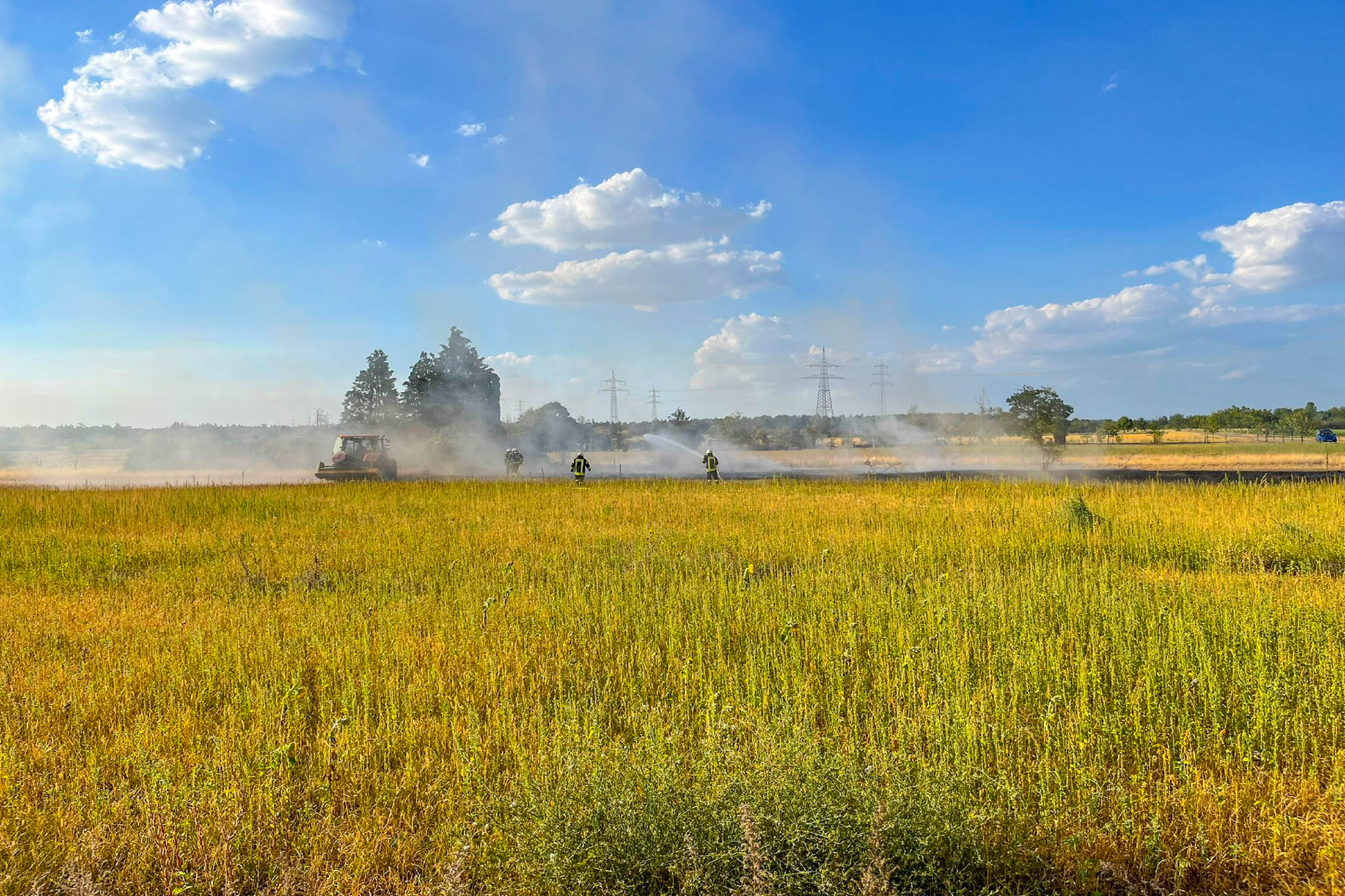Auf dem Feld nahe der Schnellbahnstrecke bei der Kreisstraße K3524 zwischen Forst und Weiher geriet auf einem befestigten Feldweg aus bislang ungeklärter Ursache ein Mofaroller in Brand. Das Feuer griff rasch auf das nebenliegende Feld über und breitete sich aufgrund der Trockenheit rasant aus.