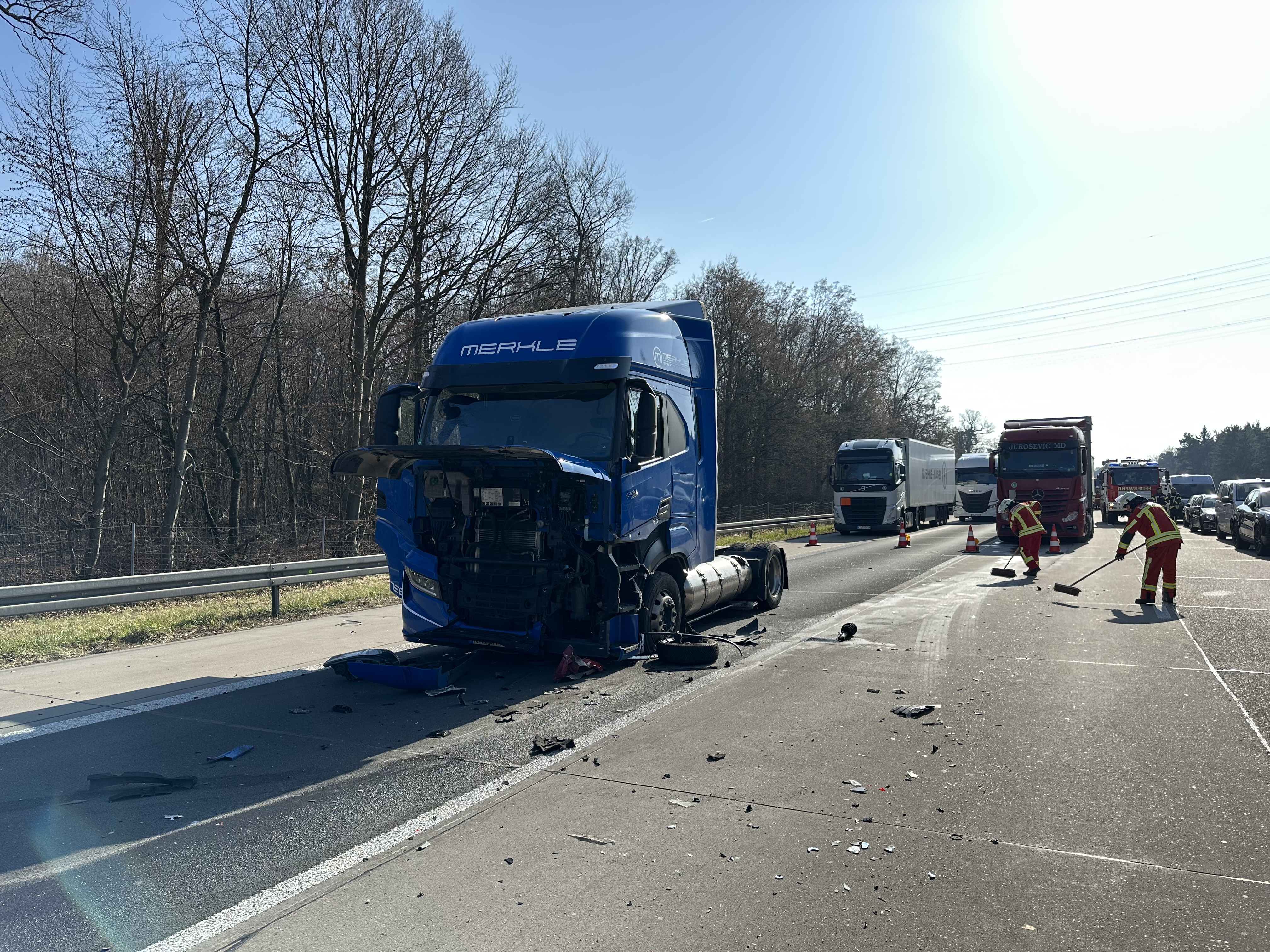 Sechs verletzte Personen und ein Sachschaden von über 100.000 Euro sind die Bilanz eines Verkehrsunfalls am Donnerstagmittag auf der Bundesautobahn 5 auf Höhe Bruchsal in Fahrtrichtung Norden. Nach dem derzeitigen Sachstand registrierten zwei Autofahrer unabhängig voneinander ein Stauende offenbar zu spät und kollidierten mit vorausfahrenden bzw. bereits stehenden Fahrzeugen. Diese wiederum wurden auf weitere Fahrzeuge aufgeschoben. In dem Verkehrsunfall waren eine Sattelzugmaschine ohne Auflieger, zwei Sprinter sowie insgesamt drei Pkw beteiligt.