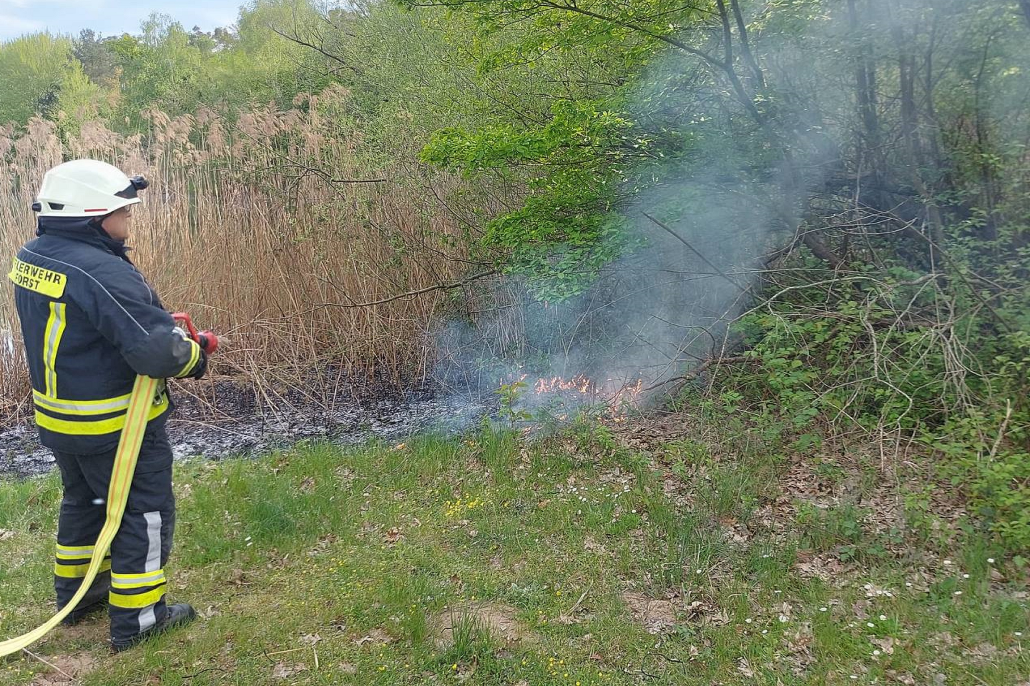 Beim Waldsee brannten einige Meter Grünfläche und Gestrüpp. Das Feuer lief bereits in das dortige Waldstück hinein. Die Feuerwehr führte Löscharbeiten durch und bewässerte die Brandstelle ausreichend mit Wasser.