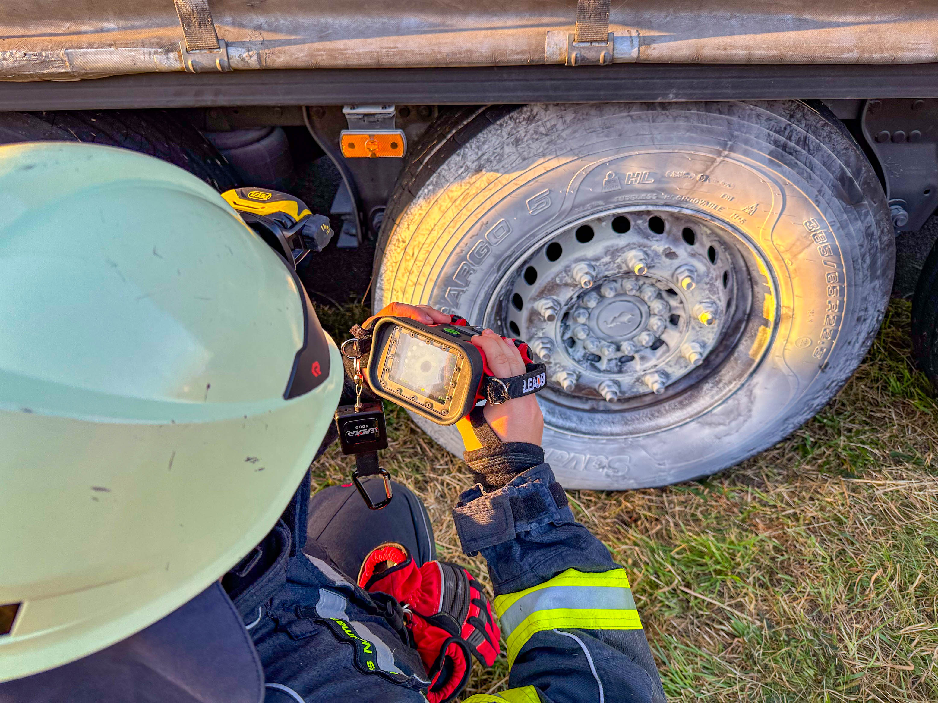Die Feuerwehr Forst eilte sofort zur Hilfeleistung herbei und versorgte eine leichtverletzte Person, bis ein nachgeforderter Rettungswagen an der Unfallstelle eintraf. Parallel wurde der Reifen des ursprünglichen Lastwagenbrandes gekühlt und mit der Wärmebildkamera kontrolliert.