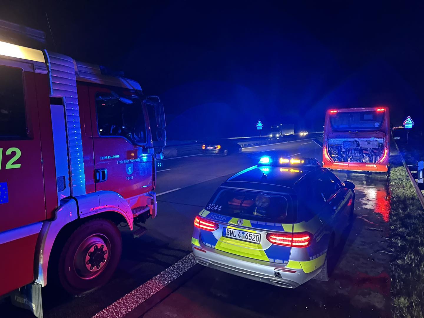 Die Freiwillige Feuerwehr Forst wurde am Dienstagmorgen gegen 05:30 Uhr zu einem Busbrand auf die Bundesautobahn A5 in Fahrtrichtung Frankfurt alarmiert.