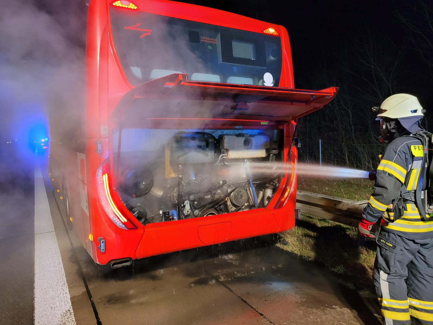 Ein Bus fing während der Fahrt im Motorraum Feuer. Mit einem Rohr konnte der Brand bekämpft werden.
