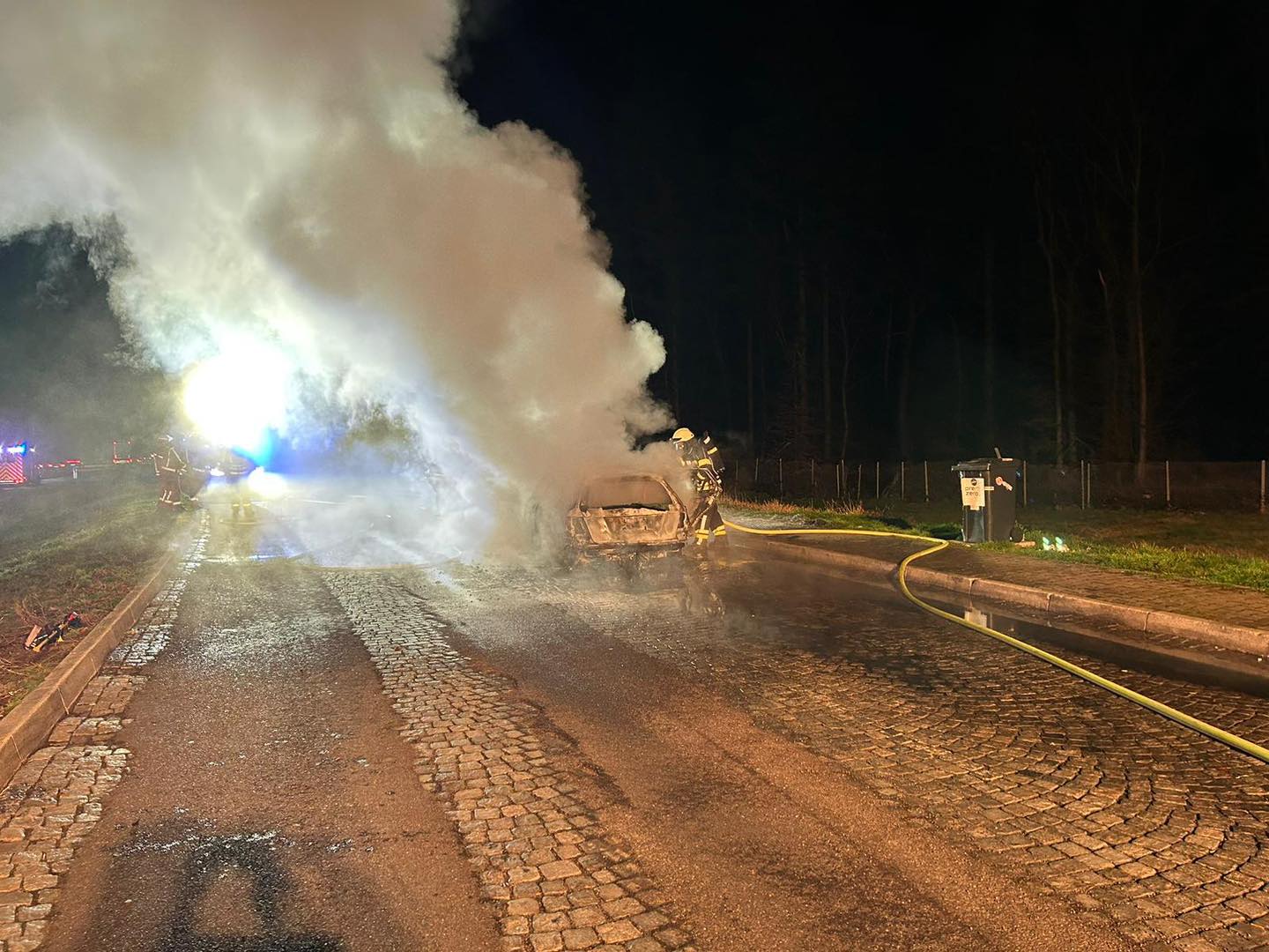 Ein Fahrzeug brannte auf einem Parkplatz der BAB5 vollständig aus. Ein parkender Lastwagen konnte in Sicherheit gebracht werden. Personen wurden nicht verletzt.