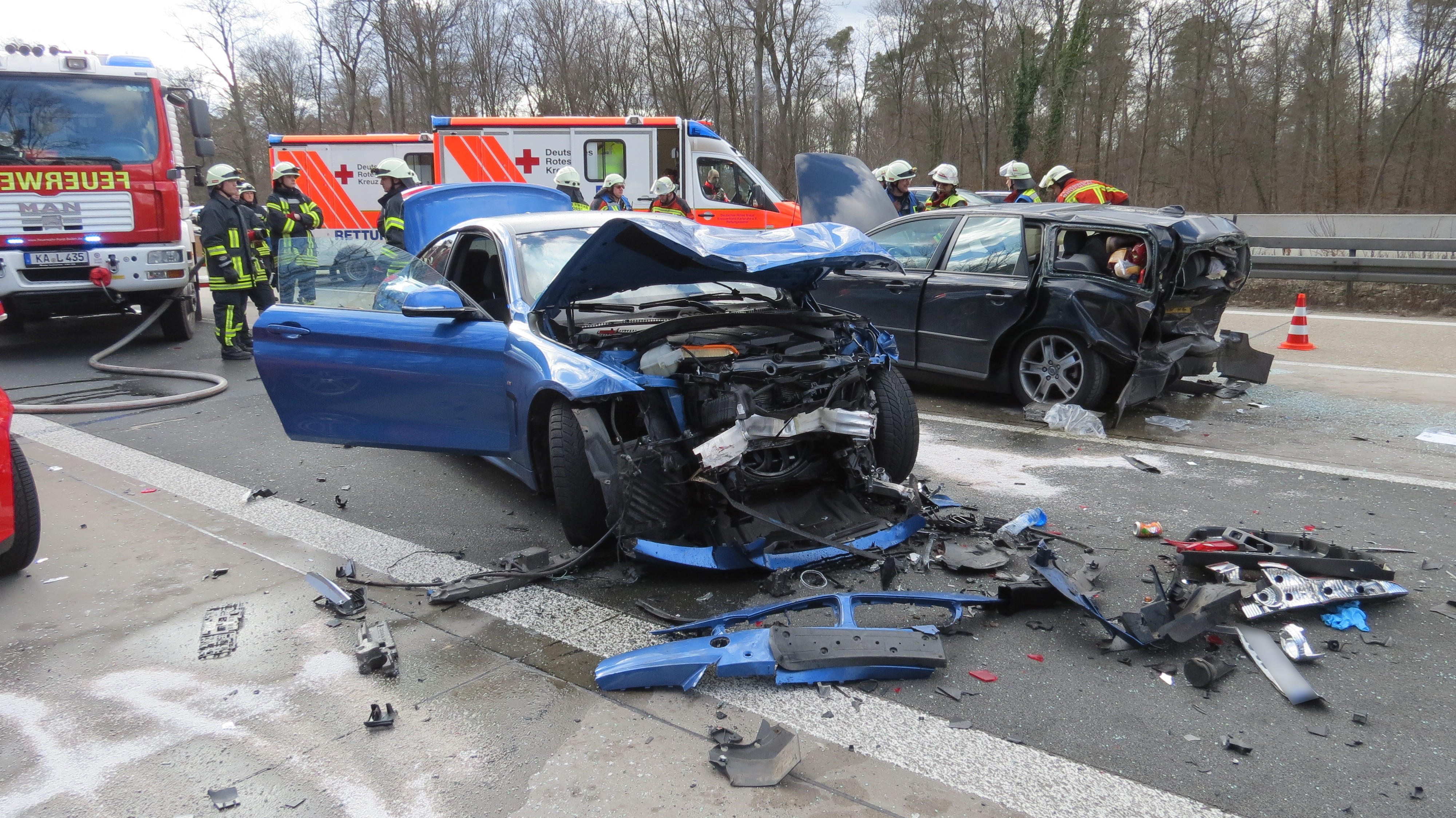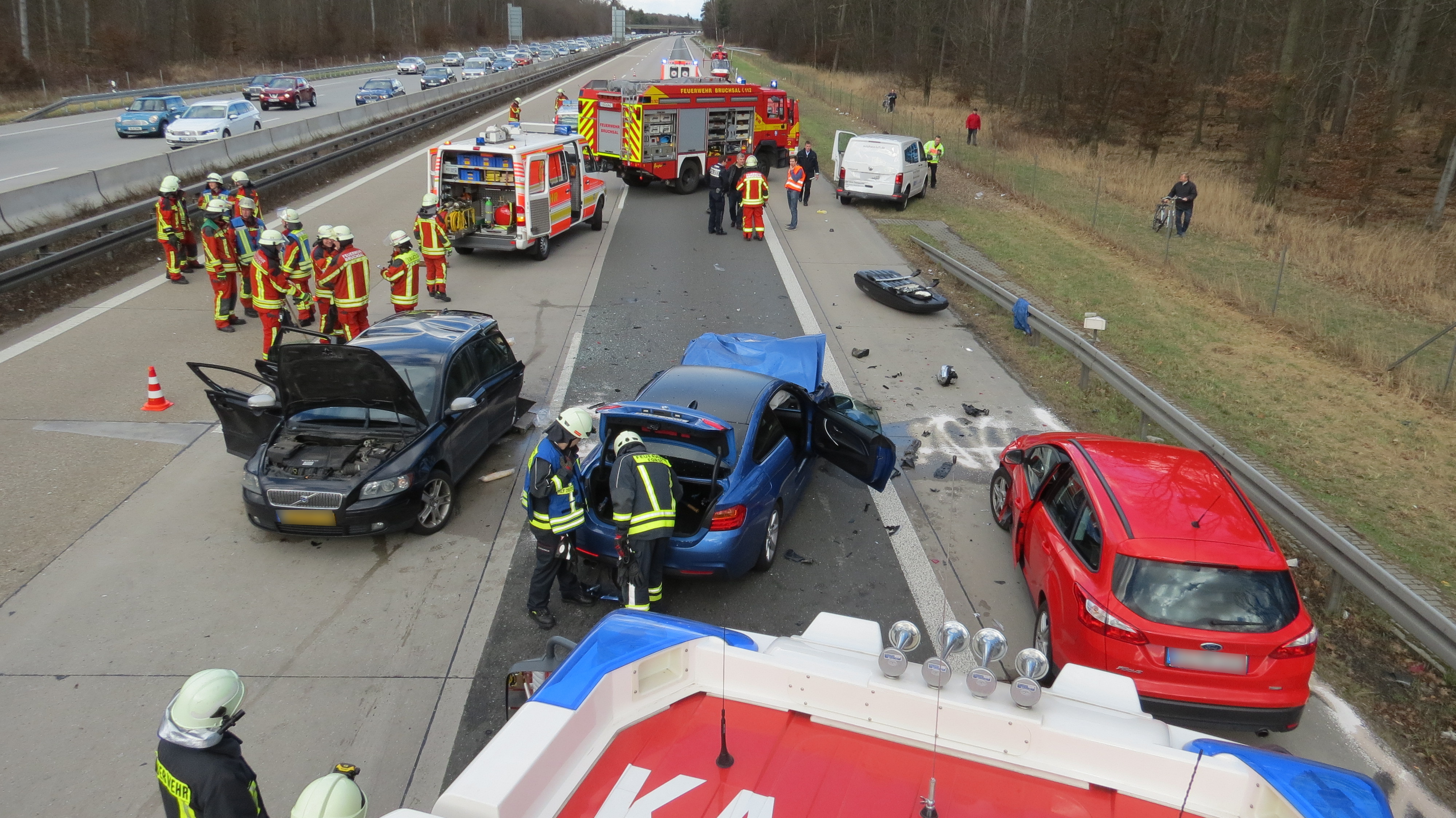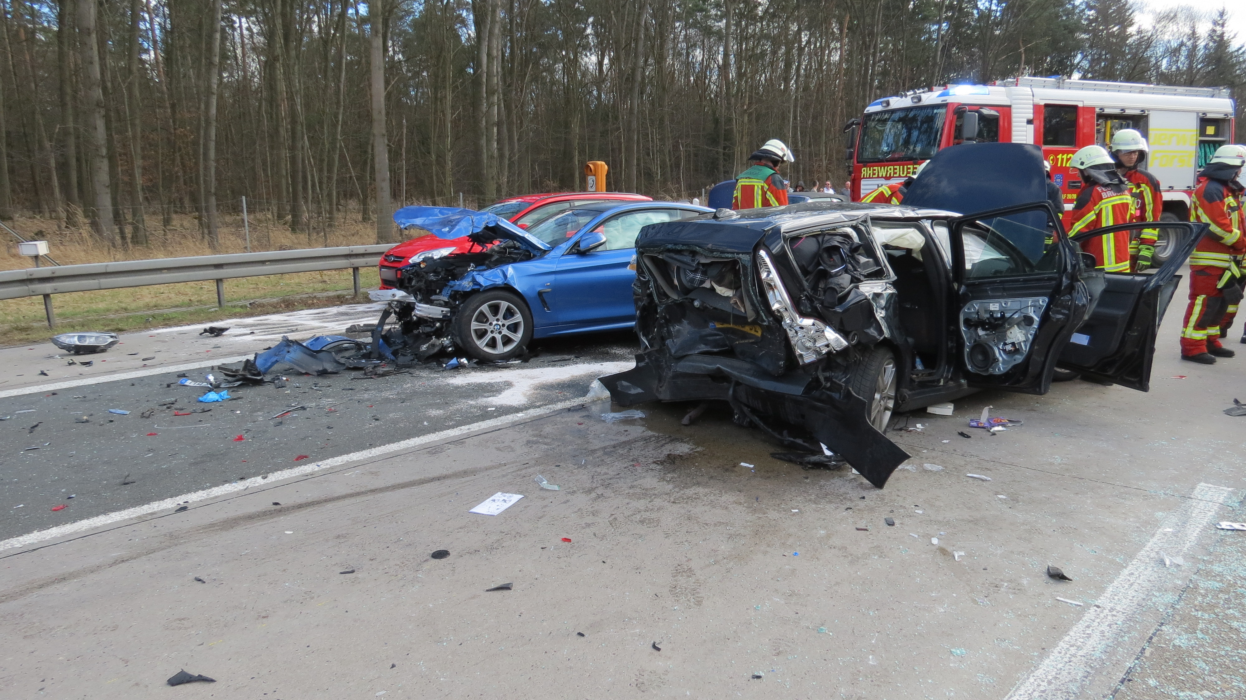Nach den bisherigen Erkenntnissen der Polizei befuhr der Fahrer eines BMW die Autobahn in nördlicher Fahrtrichtung, als er bei Kilometer 603 aufgrund einer Verkehrsstockung vom linken auf den mittleren Fahrstreifen wechselte. Hierbei kollidiert er mit einem Volvo mit niederländischer Zulassung und schleudert anschließend noch auf drei weitere Fahrzeuge, die allesamt sehr langsam auf dem rechten Fahrstreifen fuhren.