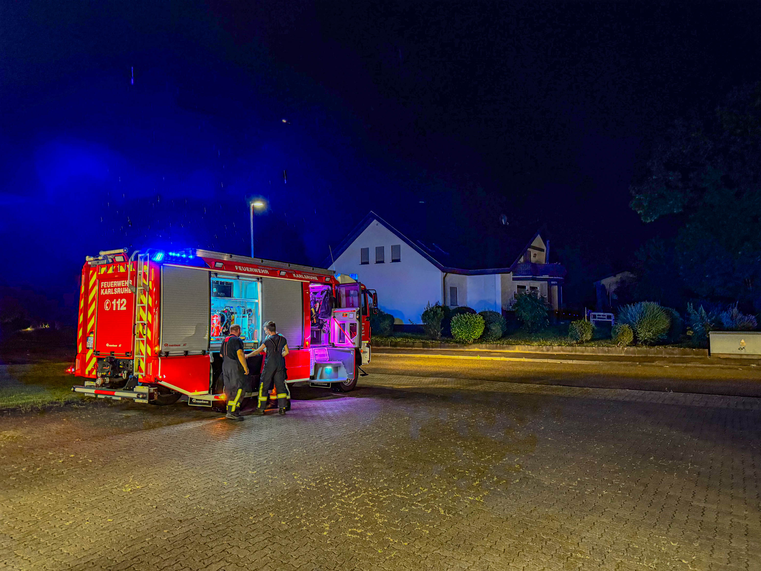 Eine Schwergewitterlage zog am Dienstagabend über den nördlichen Landkreis Karlsruhe hinweg und sorgte ortsfest mit bis zu 90 Litern Regen pro m² binnen weniger Stunden für Überflutungen, gefolgt von einem hartnäckigem Gewitter mit Blitzeinschlägen und Sturmböen.