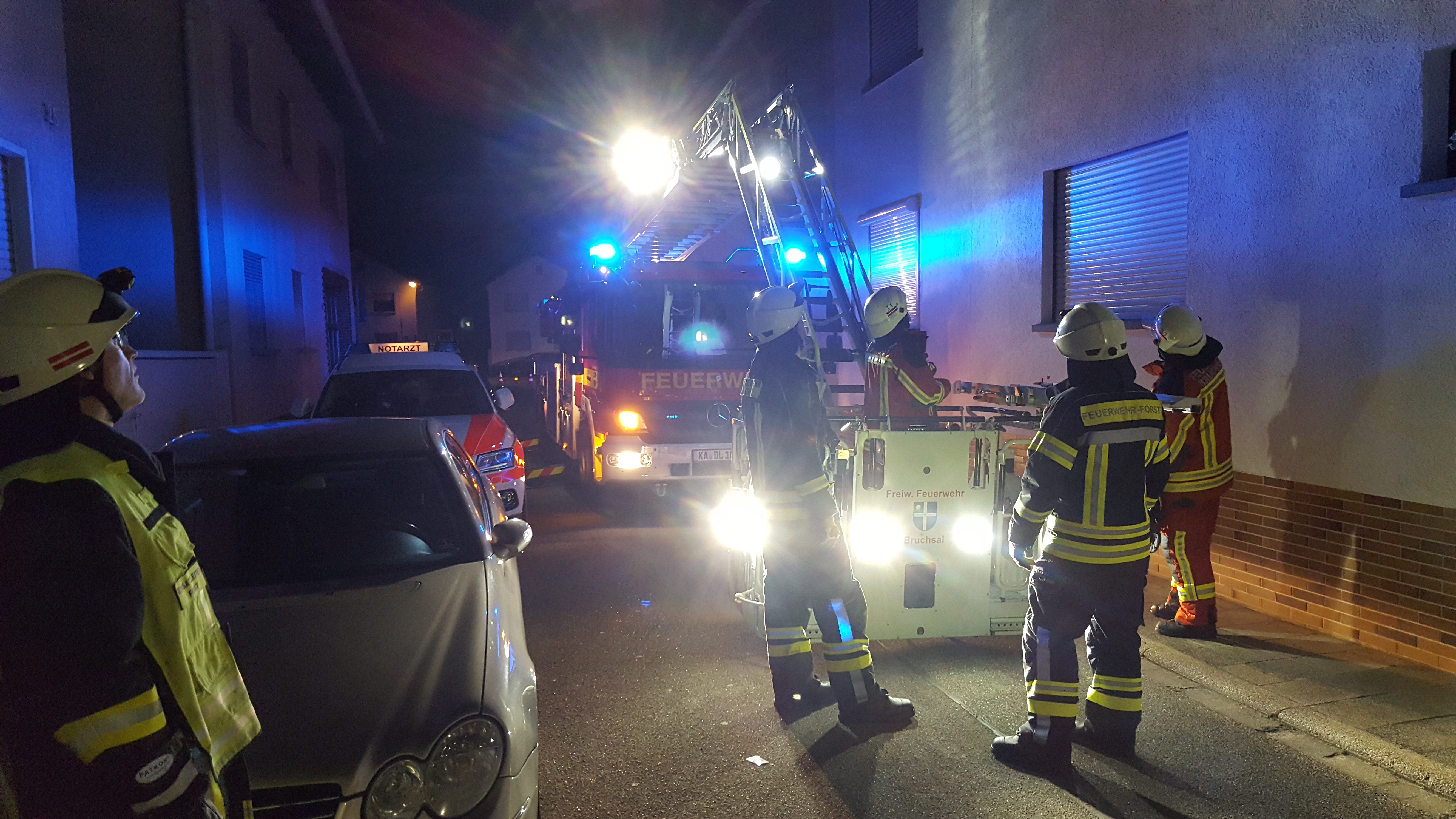 In der Nacht von Montag auf Dienstag wurde die Freiwillige Feuerwehr Forst um 23:28 Uhr mit dem Einsatzstichwort "TH Technische Hilfe für den Rettungsdienst" in die Kronenstraße alarmiert.