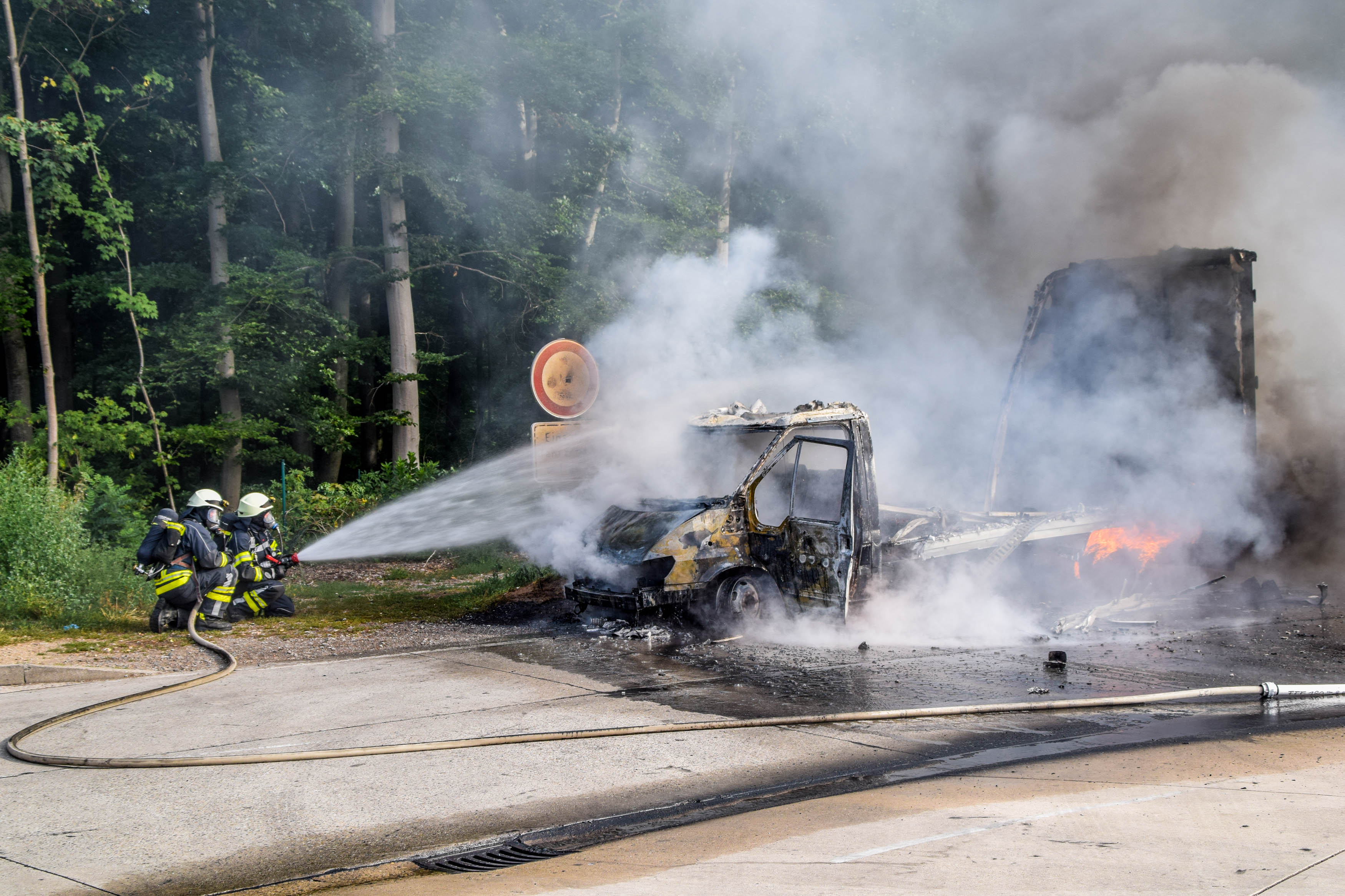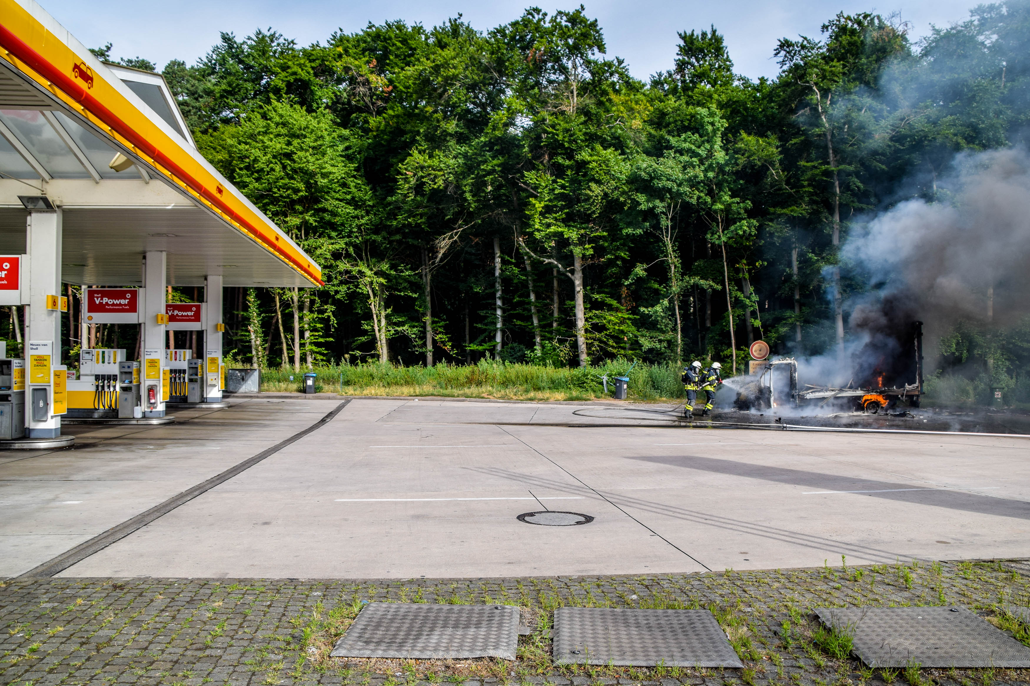 Der Fahrer eines Kleinlasters für Möbeltransporte befuhr die Autobahn BAB5 in Fahrtrichtung Süden. Beim Abfahren auf den Rasthof Bruchsal West bemerkte er plötzlich Rauch und Brandgeruch an seinem Fahrzeug. Er steuerte das Fahrzeug an den rechten Fahrbahnrand etwa 20 Meter von der dortigen Tankstelle entfernt und verließ das Fahrzeug. Sofort wurde die Feuerwehr informiert und mehrere Zeugen unternahmen erste Löschversuche welche jedoch scheiterten. Der Kleinlaster stand binnen weniger Sekunden in Vollbrand. Aus dem Fahrzeug liefen Betriebsstoffe aus und flossen brennend in Richtung Tankstelle.