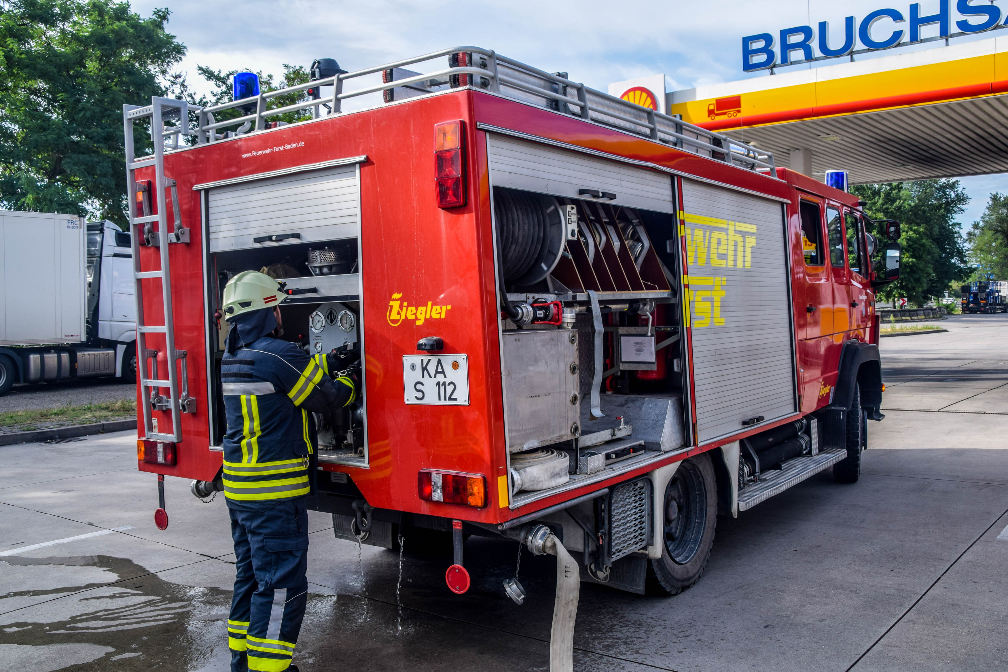 Aufgrund dieser Lage und der Vielzahl der Notrufe, erhöhte die Integrierte Leitstelle Karlsruhe das Einsatzstichwort noch vor dem Ausrücken der Feuerwehr auf „Tankstellenbrand“. Somit wurde auch die Freiwillige Feuerwehr Bruchsal und deren Führungsgruppe alarmiert.
