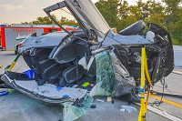 Die Freiwillige Feuerwehr Forst wurde am frühen Freitagmorgen gegen 07.10 Uhr zu einem Verkehrsunfall mit eingeklemmter Person auf die BAB5 in Fahrtrichtung Frankfurt alarmiert.