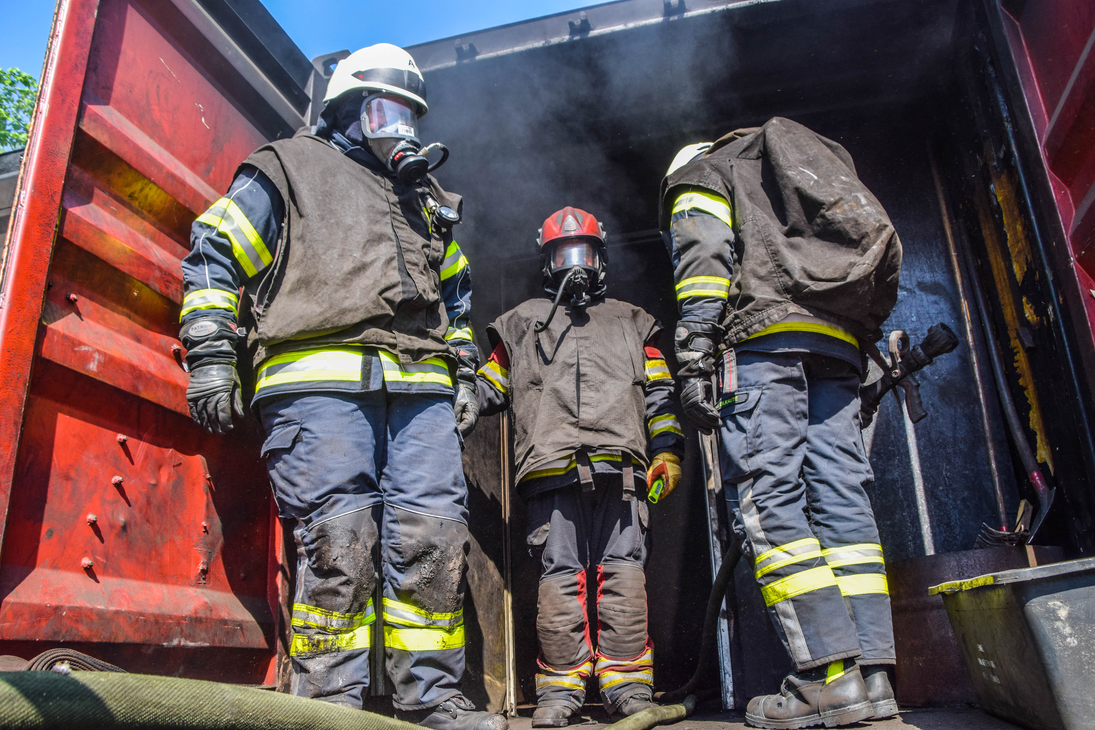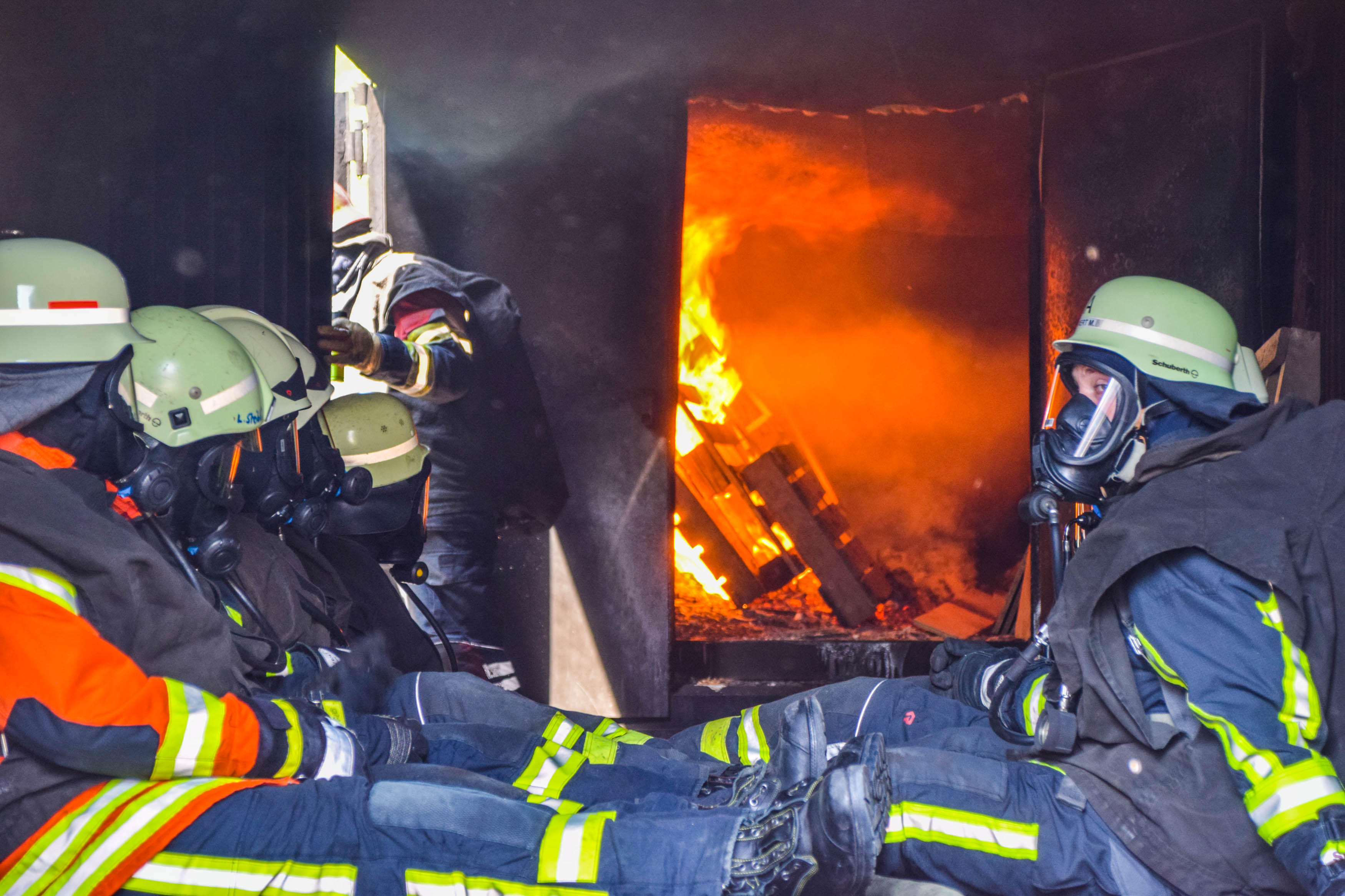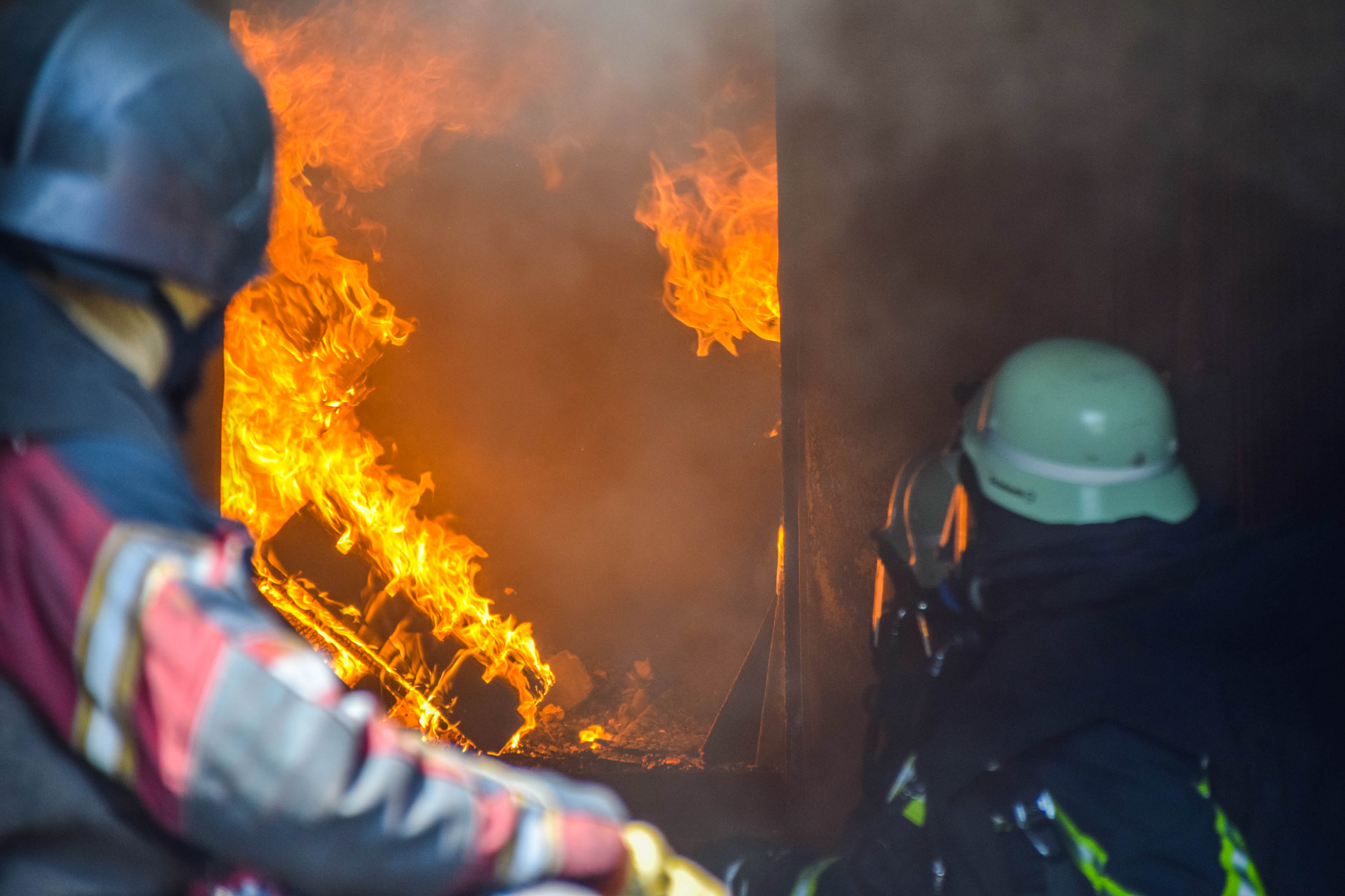 Bei der sog. Wärmeerfahrung konnten die Teilnehmer sich unter thermischer Belastung und Sichtbehinderung durch den Rauch bewegen und lernten die Funktion der Schutzkleidung kennen und werden langsam an ihre physischen Grenzen herangeführt, um diese in Zukunft rechtzeitig erkennen zu können. Im einsatztaktischen Training arbeiten die Teilnehmer Einsatzszenarien unter realistischen Bedingungen im Innenangriff ab. Das Absuchen von Räumen, die Menschenrettung und die Brandbekämpfung gehörten hier dazu.