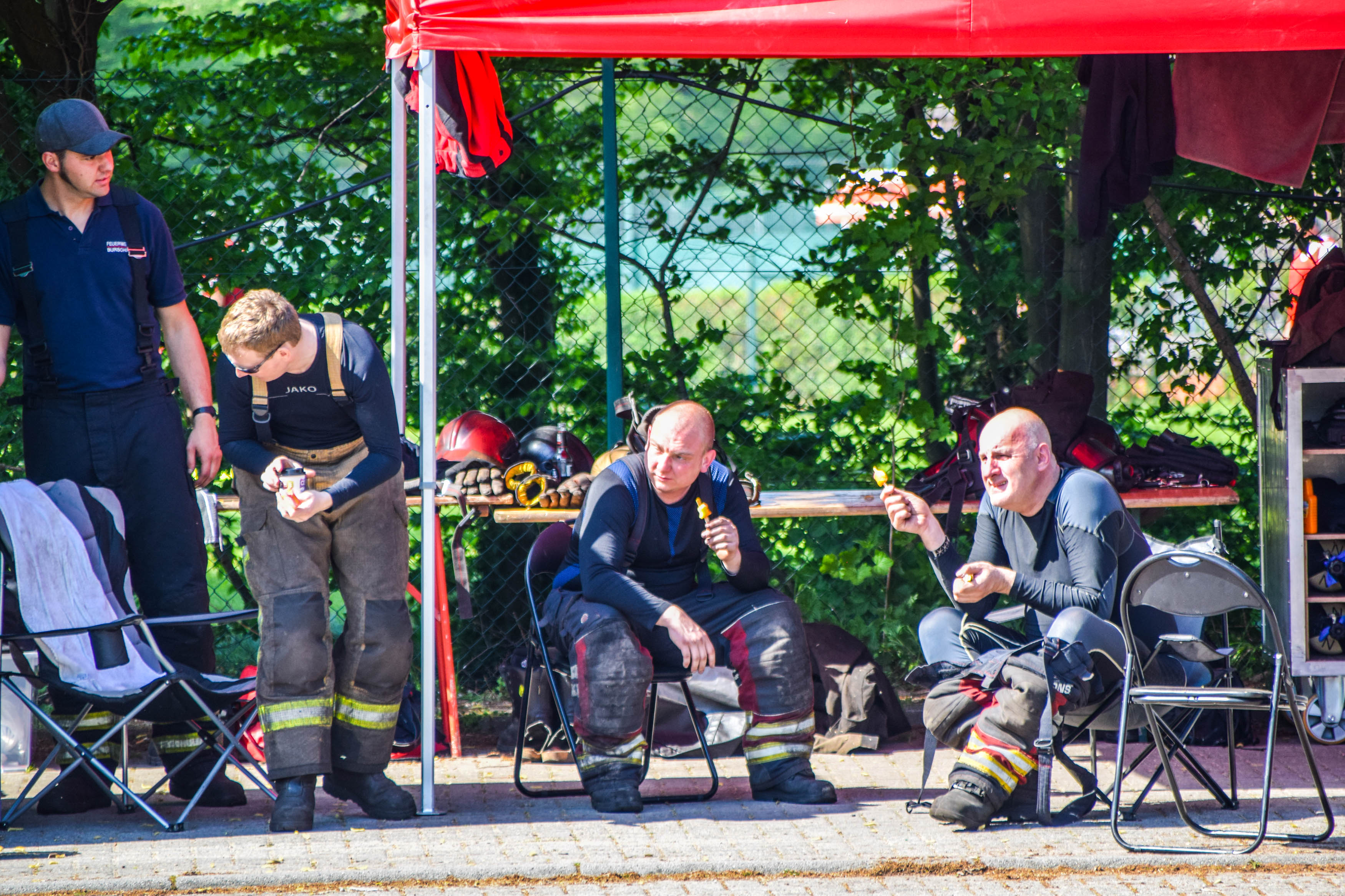 In regelmäßigen Zeitabständen fuhren immer wieder Mannschaftstransportwagen der drei Feuerwehren auf den Parkplatz der Waldseehalle in Forst. Sowie von Forst, Karlsdorf-Neuthard, als auch von Bruchsal mit allen Stadtteilen, kamen jeweils hoch motivierten Atemschutzgeräteträger zur Heißausbildung. In mehreren Durchgängen wurden die Ausbildungsmöglichkeiten der Realbrand-Anlage durchlaufen.