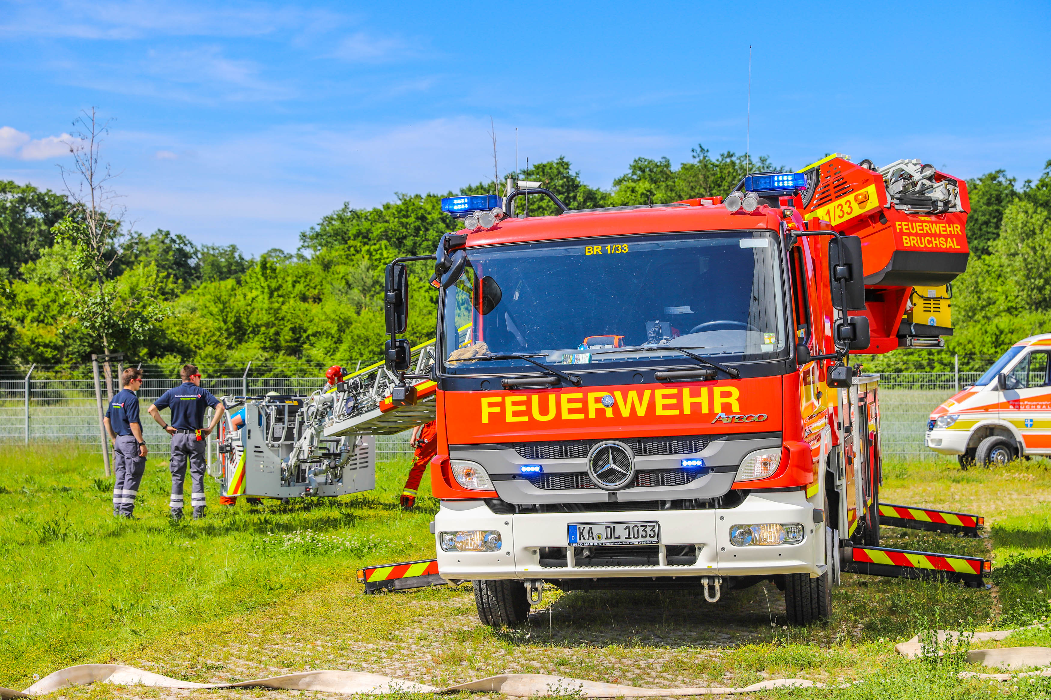 Neben den Einsatzkräften der Feuerwehren aus Forst, Bruchsal und Karlsdorf-Neuthard, waren auch 3 Kameradinnen und Kameraden der örtlichen DRK Bereitschaft des Ortsverein Forst an der Übung beteiligt. Sie übernahmen die Absicherung bei den sommerlichen Temperaturen – hierfür einen großen Dank für die Unterstützung!