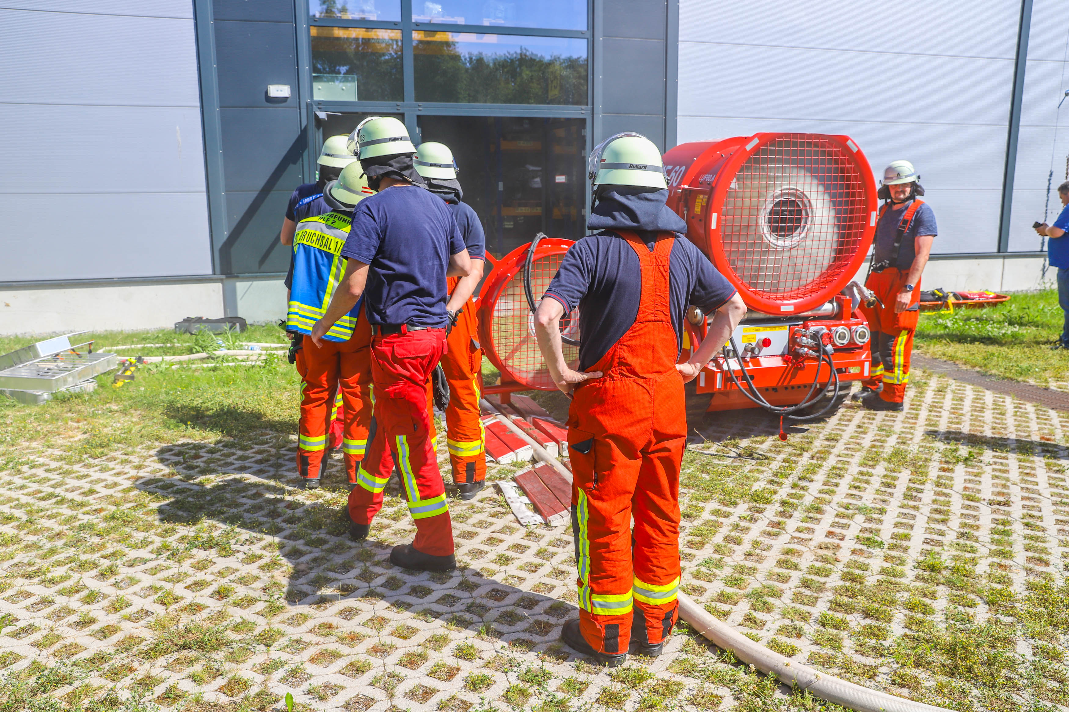 Die Übungsschwerpunkte lagen auf den speziellen Bedingungen an der Übungsörtlichkeit. Diese umfassten die Löschwassereinspeisung, die Kommunikation über den Gebäudefunk und den Einsatz des LUF aufgrund der gigantischen Lagerhalle.