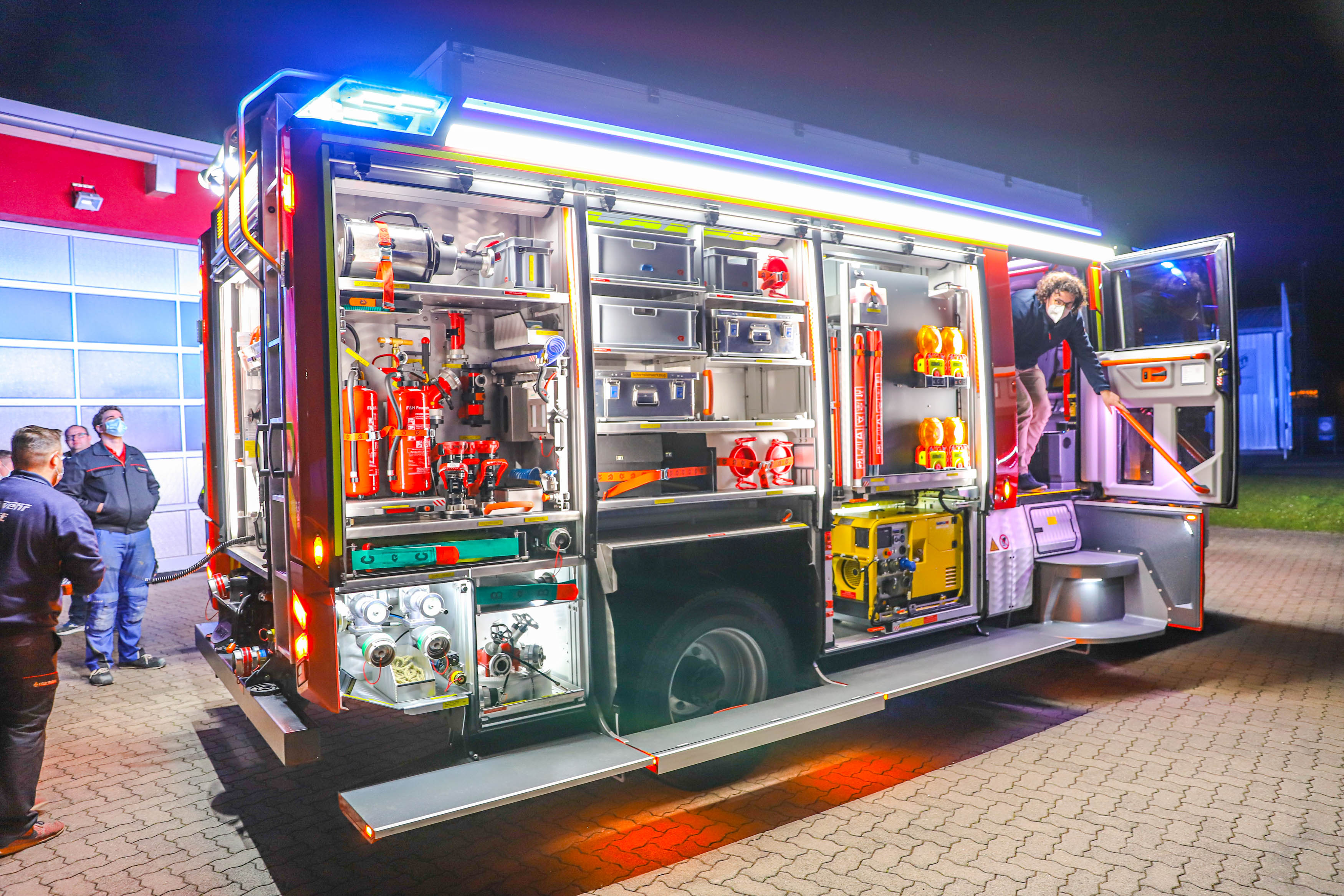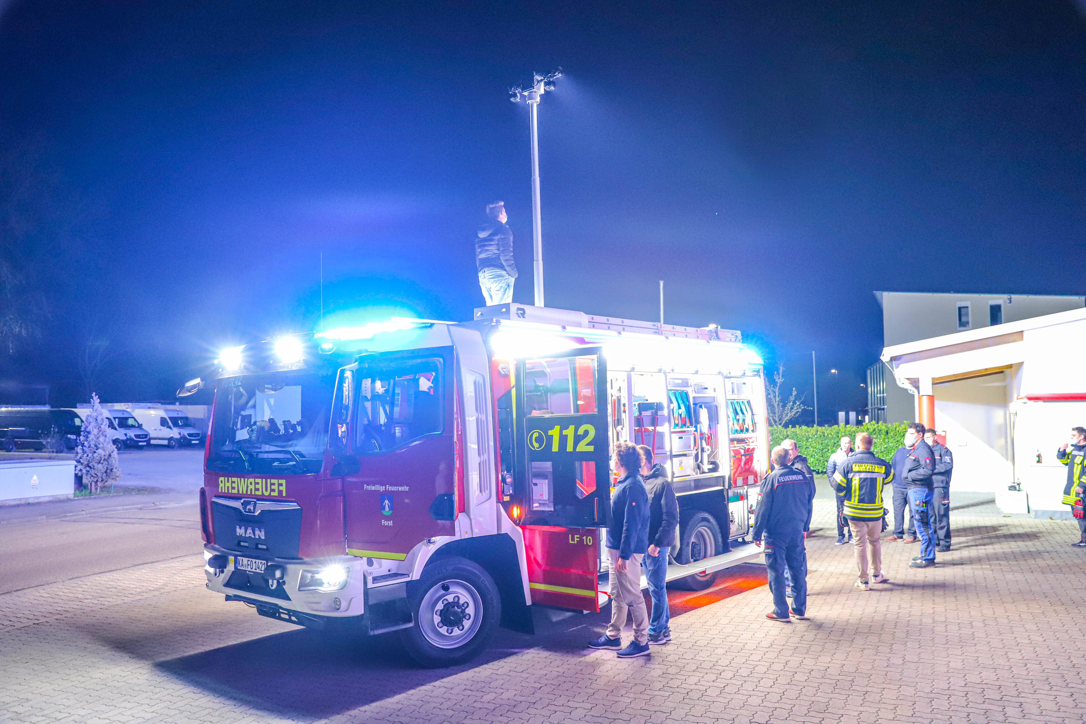 Im kleinen Rahmen empfing die Einsatzmannschaft dann das neue LF 10 am späten Freitagabend am Forster Feuerwehrhaus. Natürlich blieb kurz darauf kein Zentimeter am nagelneuen Feuerwehrauto unberührt. Die neue Technik, das Design und die Gerätschaften wurden unter neugierigen Blicken in Augenschein genommen.