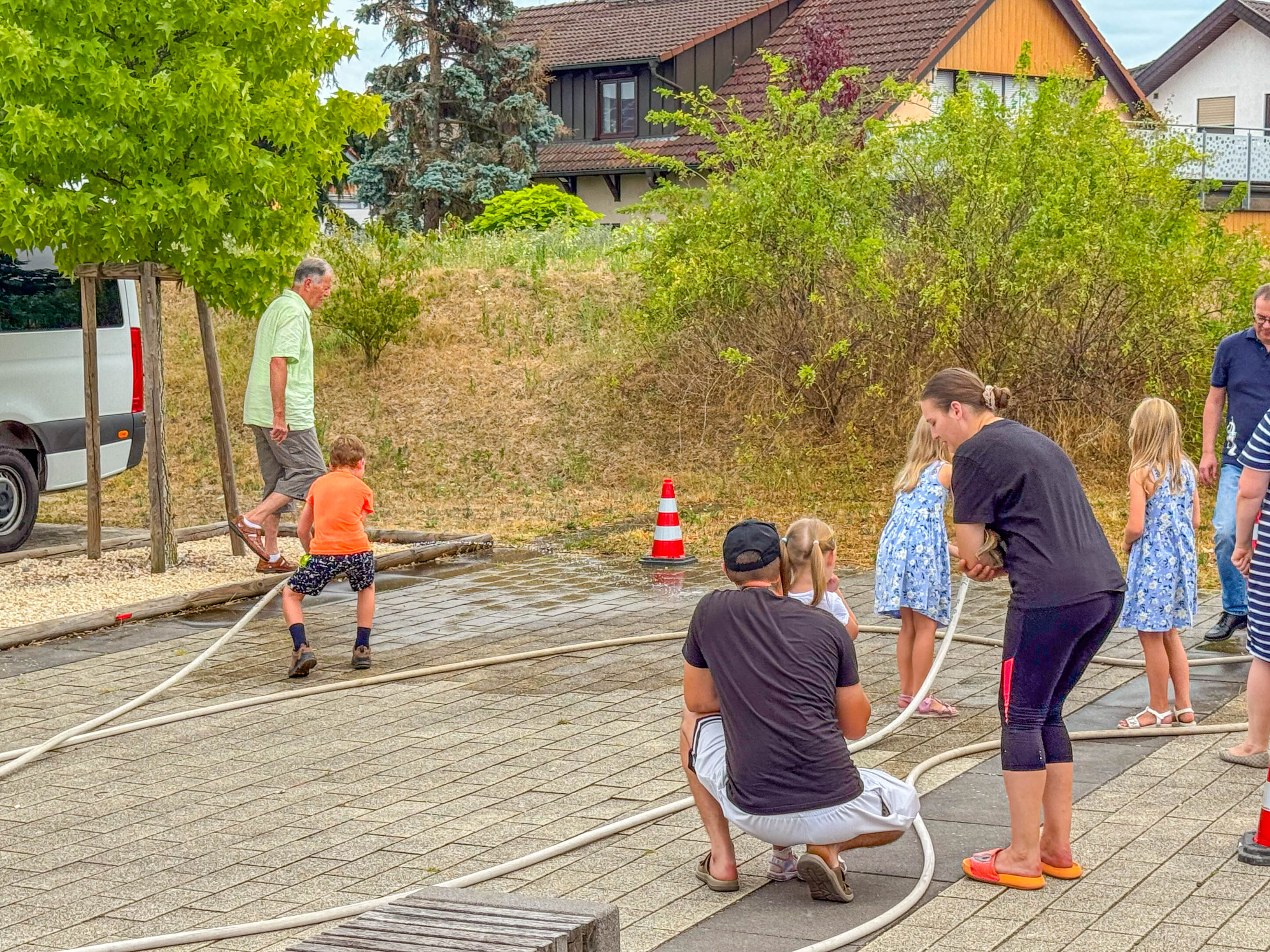 Bei schwülwarmen Temperaturen war unser Angebot besonders willkommen: Die Wasserspiele der Feuerwehr sorgten für Abkühlung und begeisterten insbesondere die Kinder und Jugendlichen, die sich mit Freude austobten. Parallel konnten Groß und Klein unser Löschfahrzeug aus nächster Nähe bestaunen und einen Einblick in unsere Technik und Ausrüstung gewinnen. Für die jüngsten Besucherinnen und Besucher gab es außerdem Feuerwehr-Ausmalbilder – ein kreatives Mitbringsel und eine schöne Erinnerung an das Wochenende.