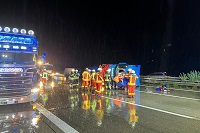 Die Freiwillige Feuerwehr Forst wurde am frühen Montagmorgen gegen 02:02 Uhr zu einem Lkw-Unfall auf die Bundesautobahn A5 in Fahrtrichtung Frankfurt alarmiert.