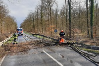 Zu einem umgestürzten Baum aufgrund des starken Sturmtiefs "Eberhard" wurde die Freiwillige Feuerwehr Forst am Sonntagnachmittag gegen 13.24 Uhr in die Werner-von-Siemens-Straße in Forst alarmiert.
