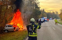 Die Feuerwehr Forst wurde am Morgen des Allerheiligen zu einem Pkw-Brand nach einem Verkehrsunfall auf die L556 zwischen Forst und Hambrücken gerufen.