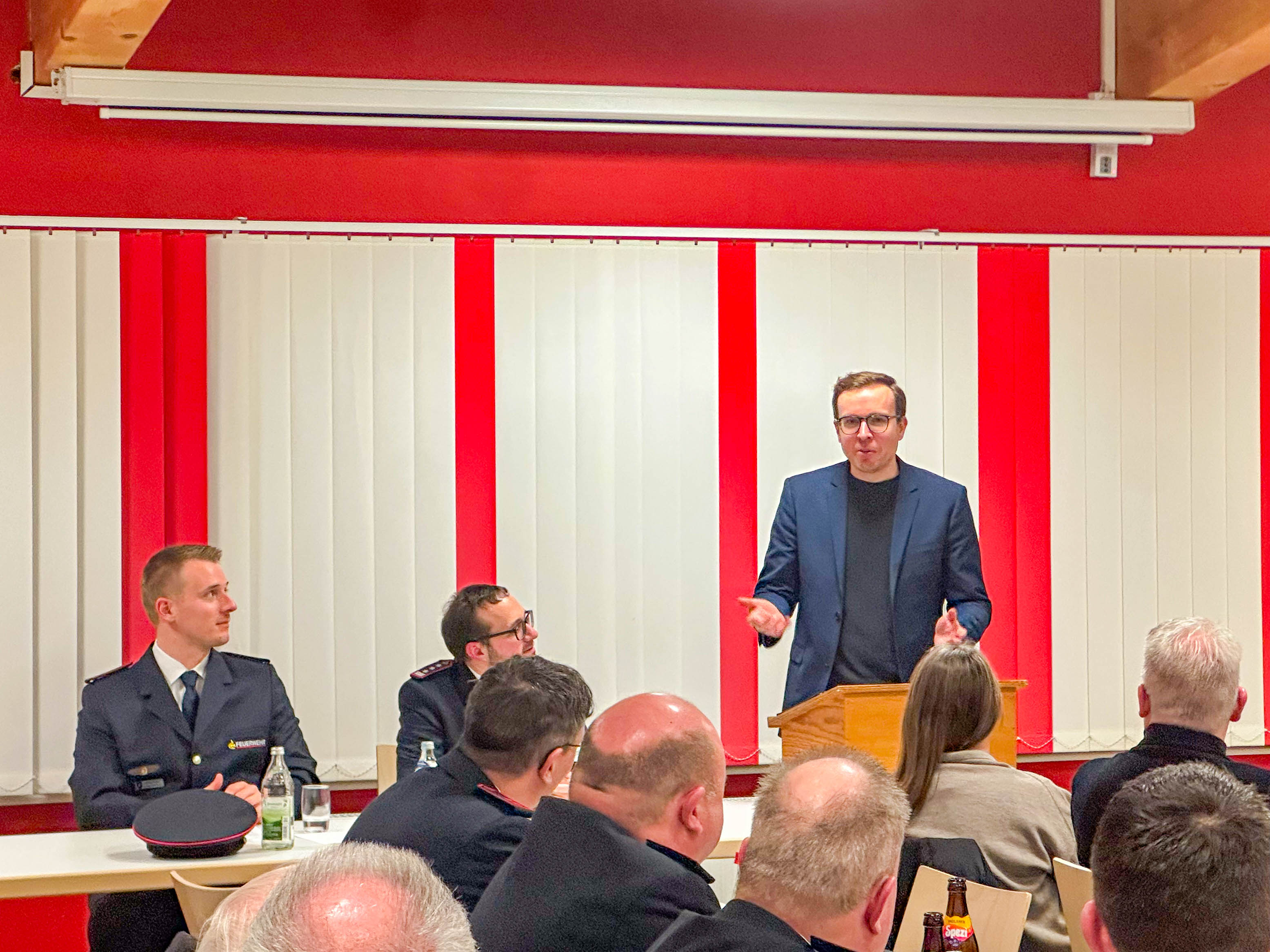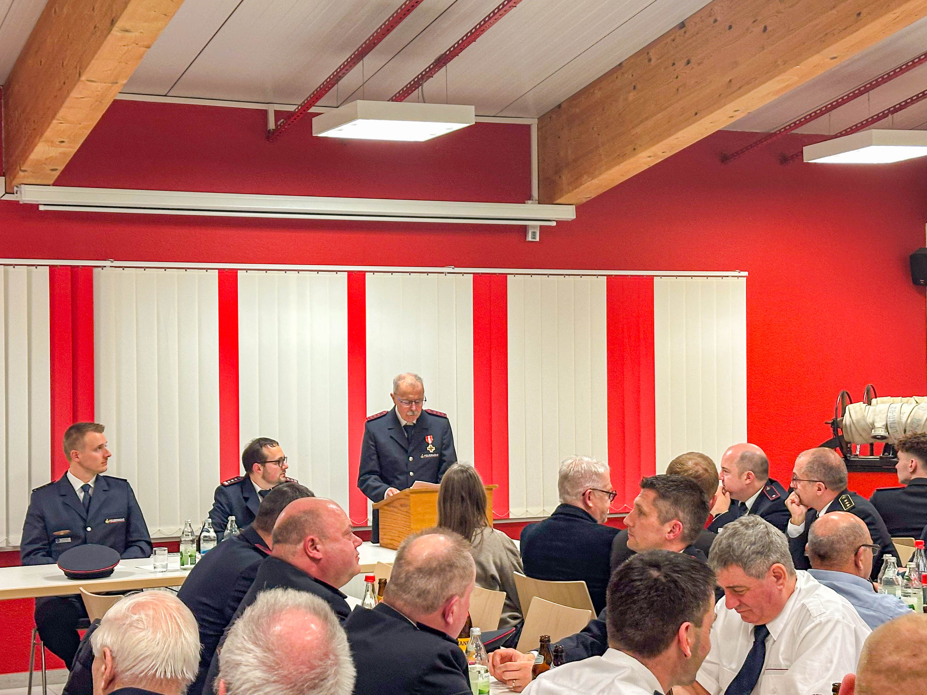 In seinen Grußworten hob Jürgen Bordt den guten Ausbildungsstand sowie die stabile Personalzahl hervor. Zudem betonte er die zunehmende Bedeutung des Katastrophen- und Zivilschutzes sowie die Gefahren durch hybride Angriffe, beispielsweise auf die Strominfrastruktur. Er dankte der Feuerwehr für die geleistete Arbeit.