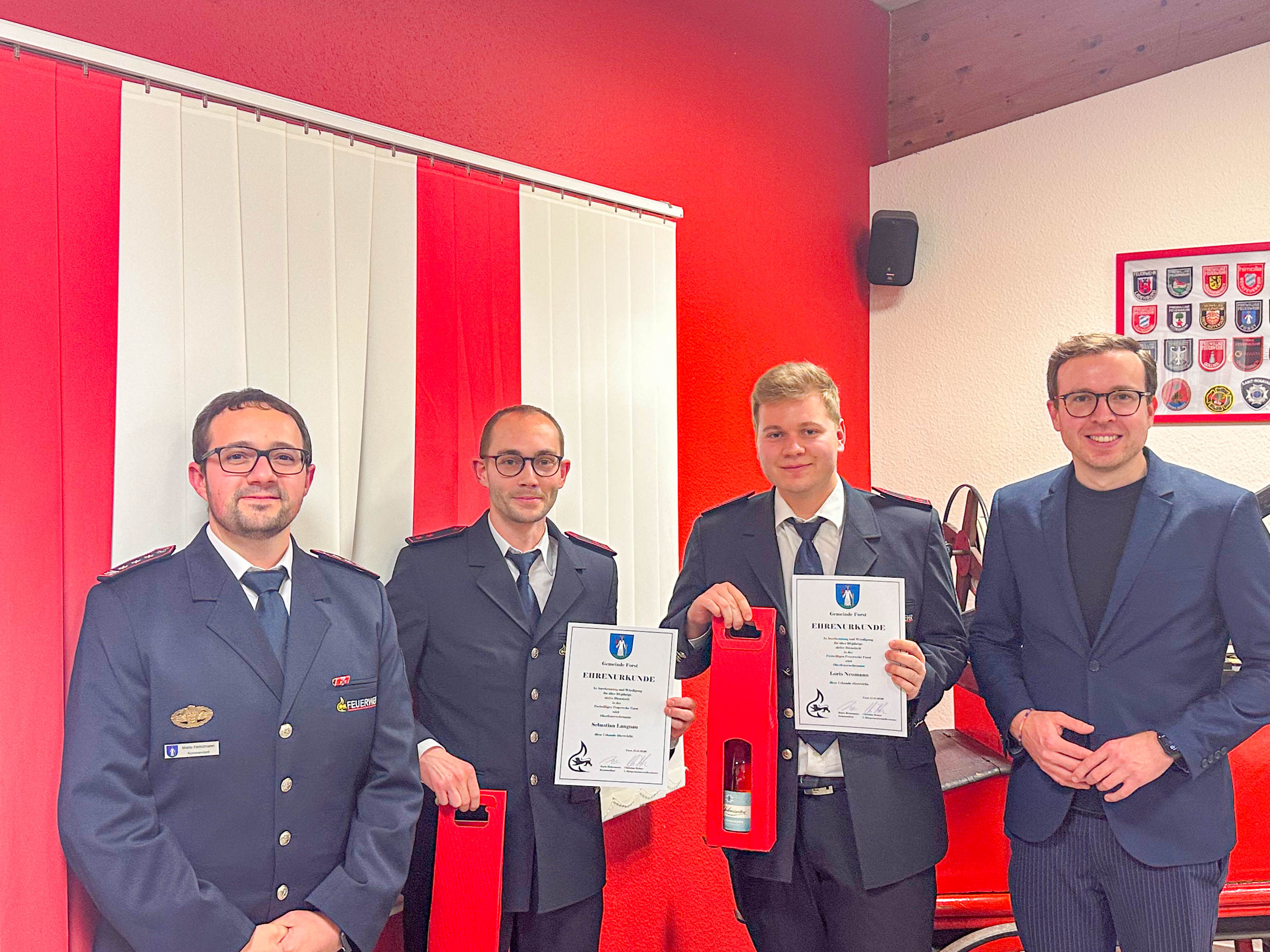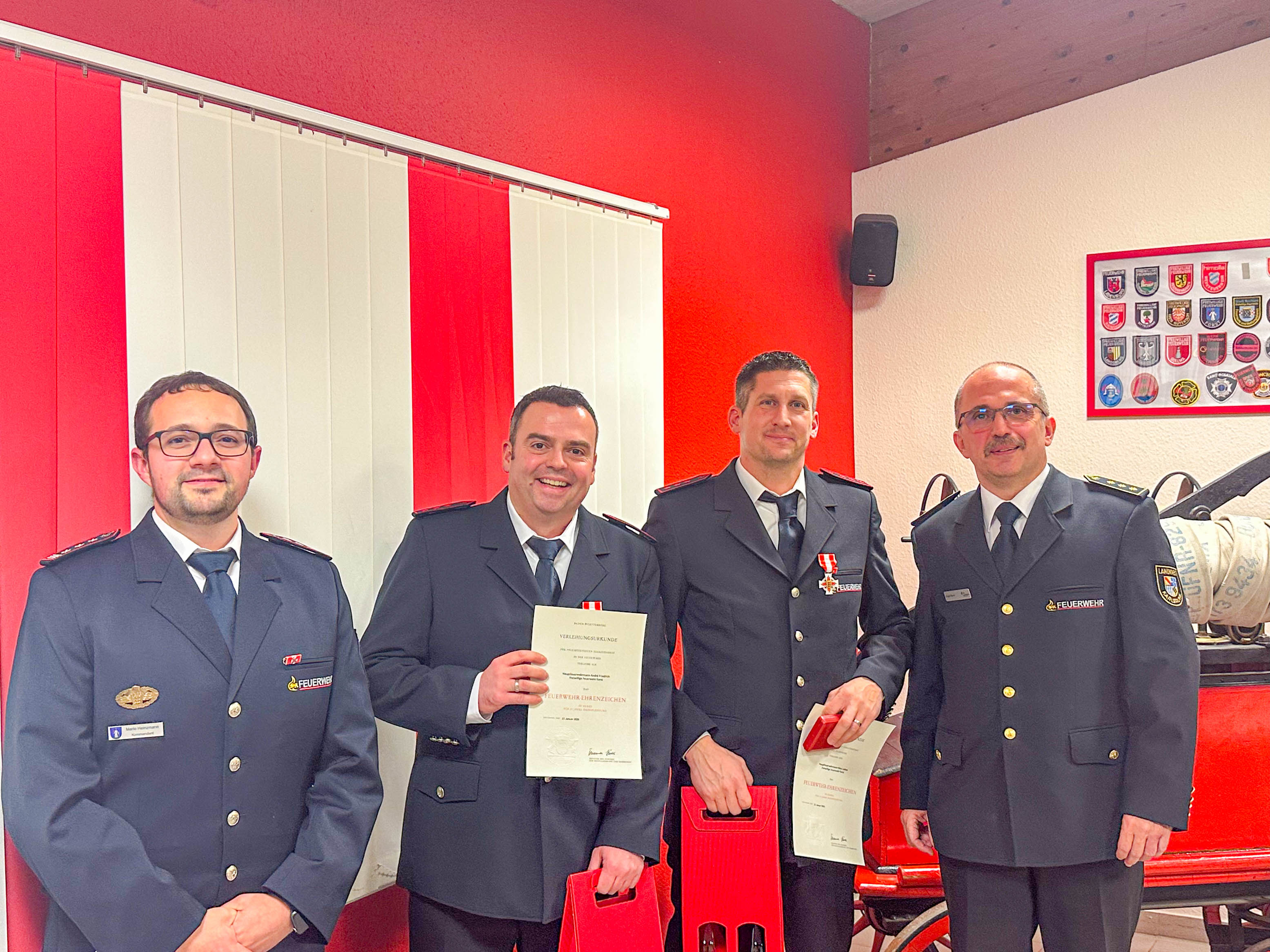 - Nino Lackus und André Friedrich erhielten das Feuerwehr-Ehrenzeichen in Silber für 25-jährige Dienstzeit